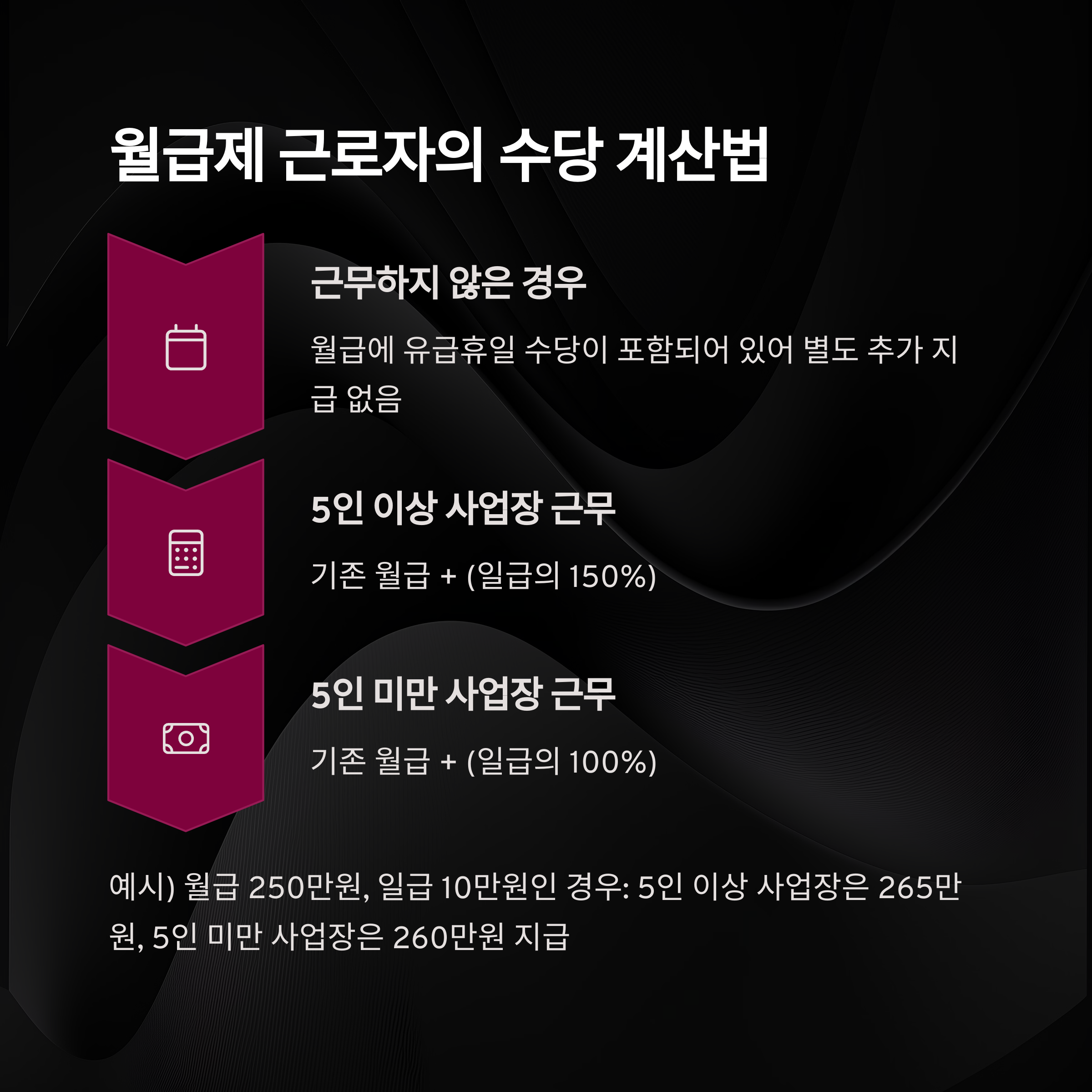 - 5인 이상 사업장: 기존 월급 + (일급의 150%)