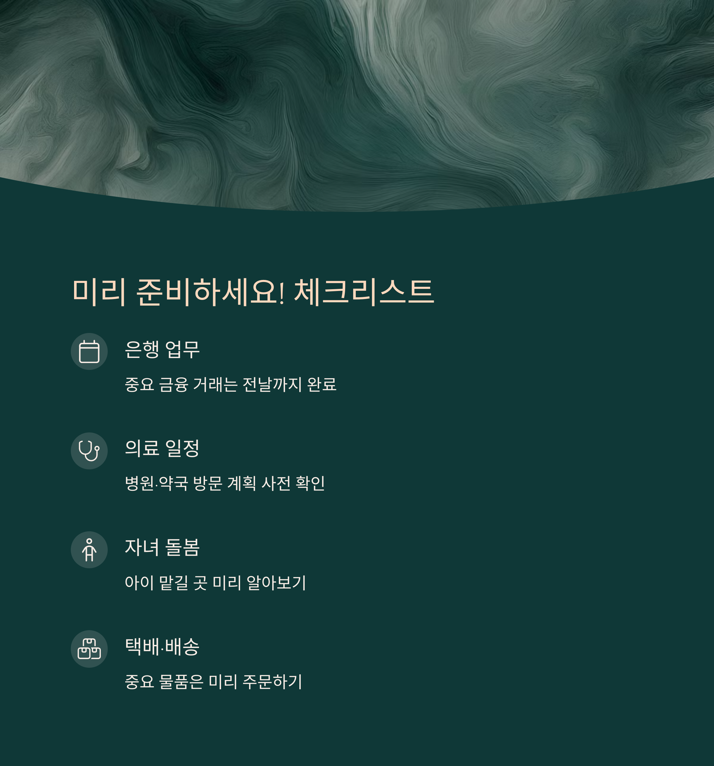 - 은행업무: 4월 30일 이전에 필수 업무 마무리