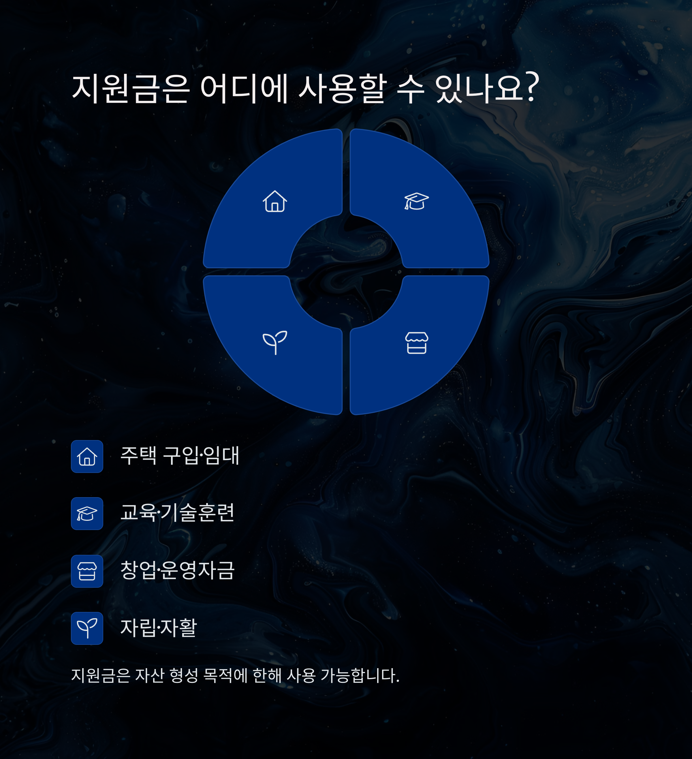 복지로 누리집 또는 주소지 관할 동주민센터에서 신청이 가능합니다. 단, 3년간 꾸준한 근로활동, 월 저축 이행, 자립역량교육 10시간 이수 등의 요건을 충족해야 합니다.