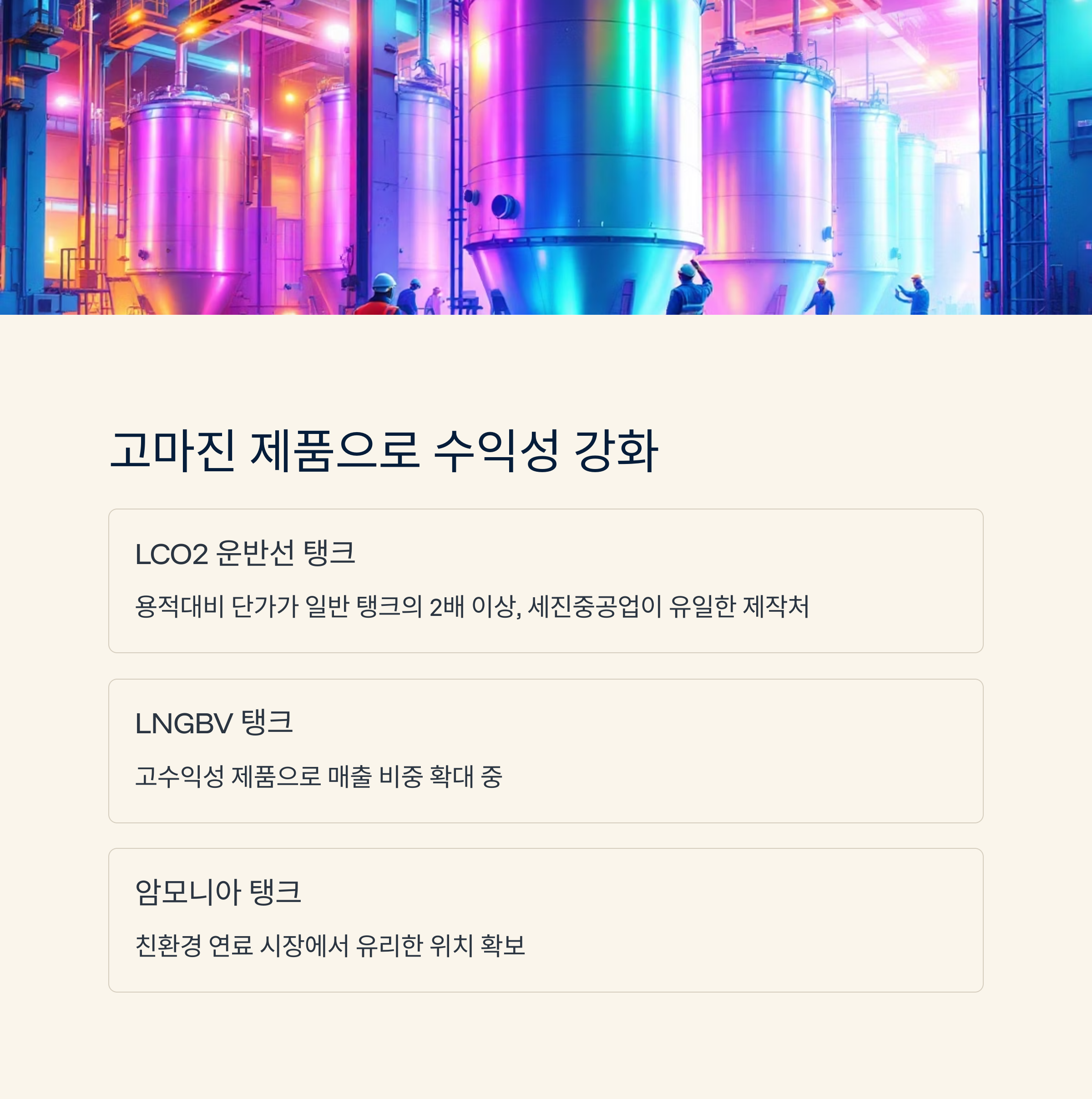 세진중공업이 2025년 1분기 호실적을 발표하면서 증권가의 긍정적인 평가를 받고 있습니다. Deck House 및 고부가가치 탱크 수주가 증가하며 수익성이 대폭 향상되었고, 친환경 선박 수요 증가라는 외부 환경도 세진중공업에 우호적으로 작용하고 있습니다. 고수익 제품 비중 확대, 기술적 진입장벽, 글로벌 파트너십 등 중장기 성장성과 밸류에이션 매력을 동시에 갖춘 점에서 눈여겨볼 만한 종목입니다.