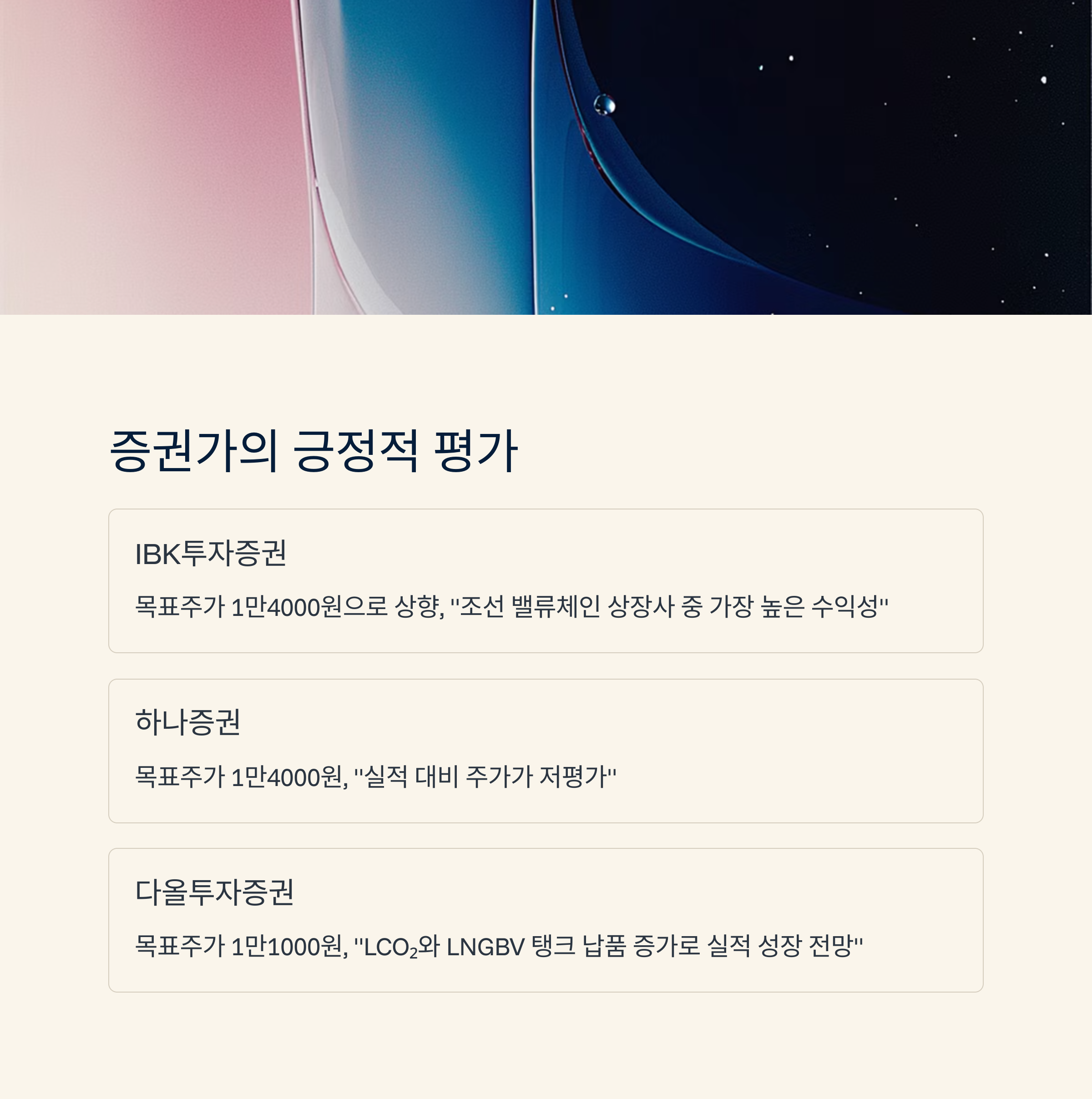 | IBK투자증권 | 1만4000원 | 수익성 최고, 조선 밸류체인 내 저평가 |