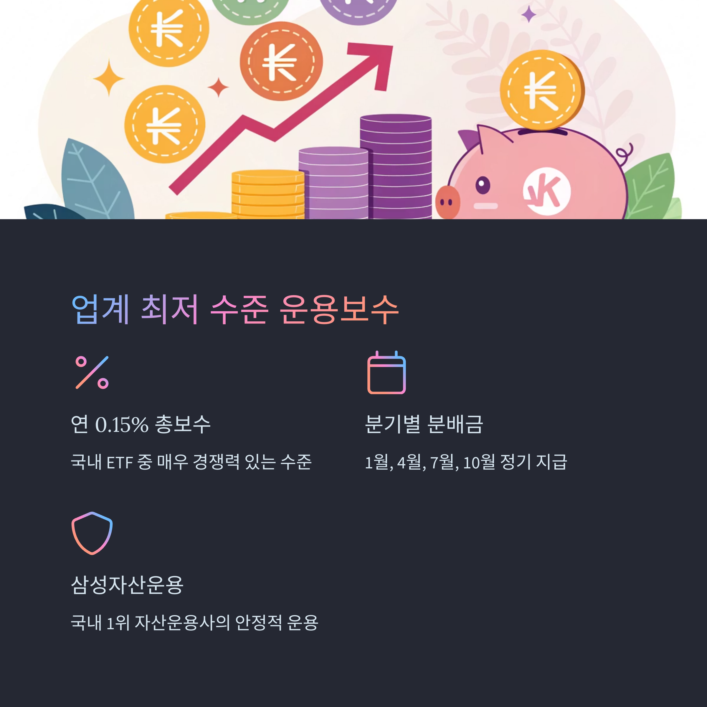 총보수는 연 0.15%로 국내 ETF 중에서도 매우 낮은 수준입니다.