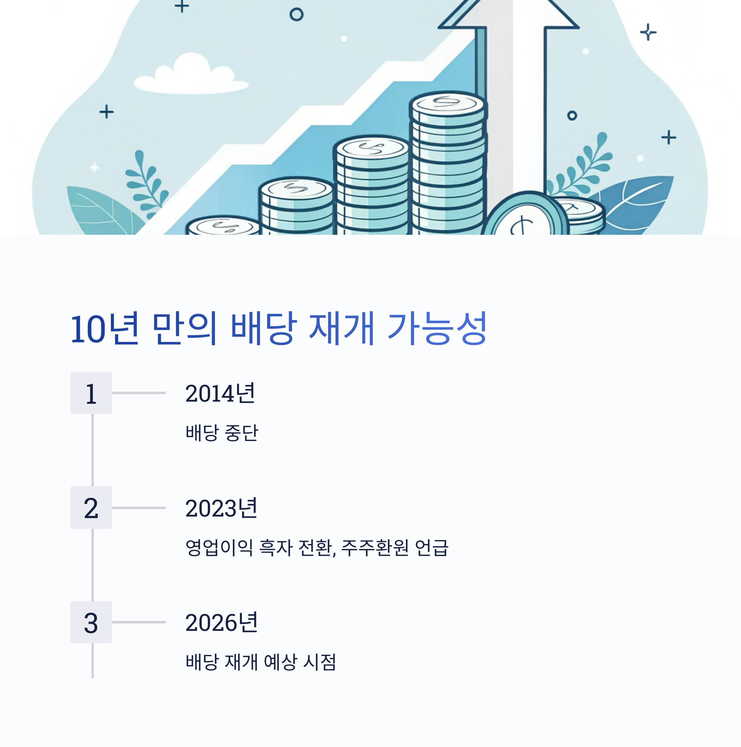 | 배당 재개 가능 시점 | 2026년 전후 | 흑자 기조 유지 시 |