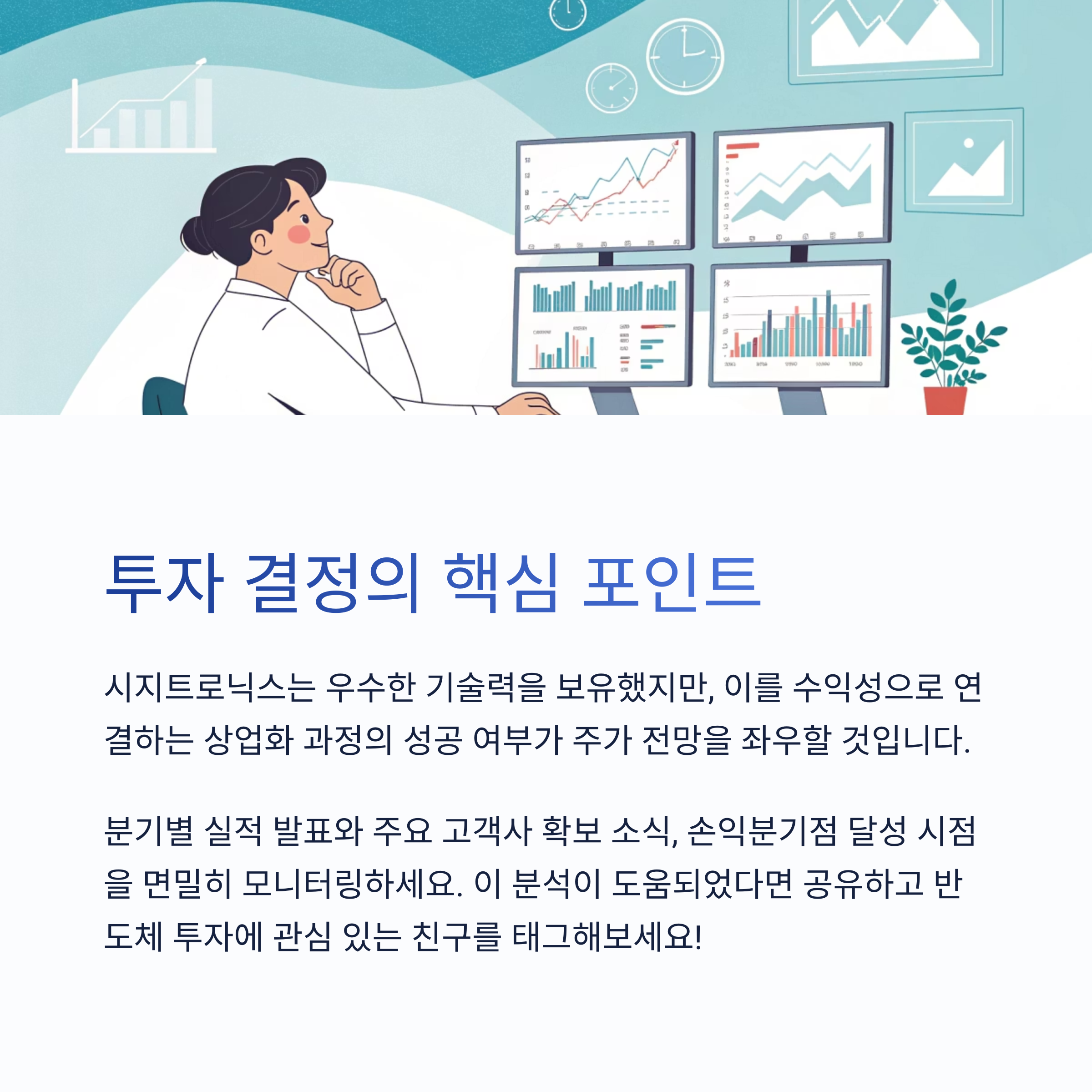결론적으로, 시지트로닉스는 기술은 뛰어나지만 사업화와 수익화에는 여전히 과제가 많습니다.