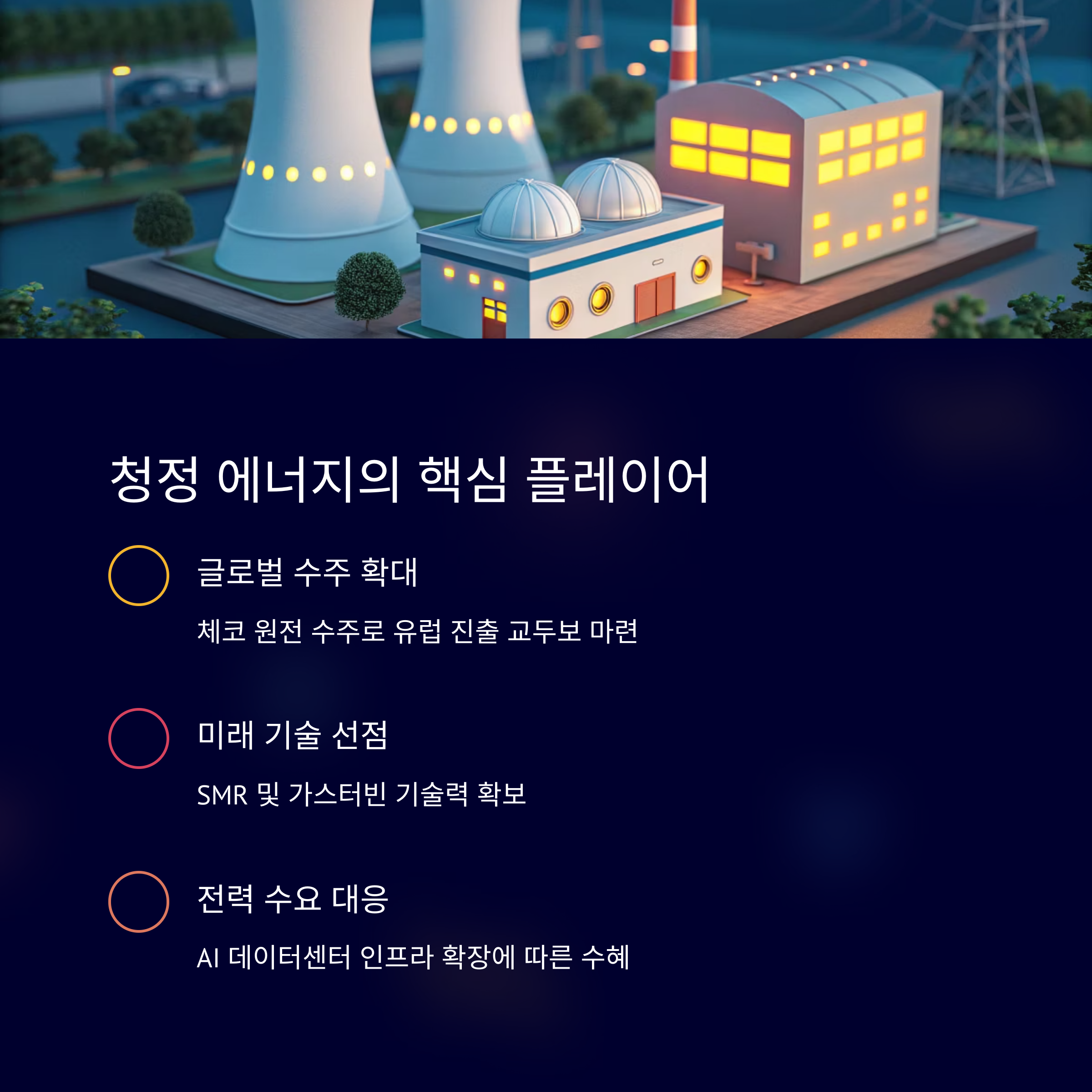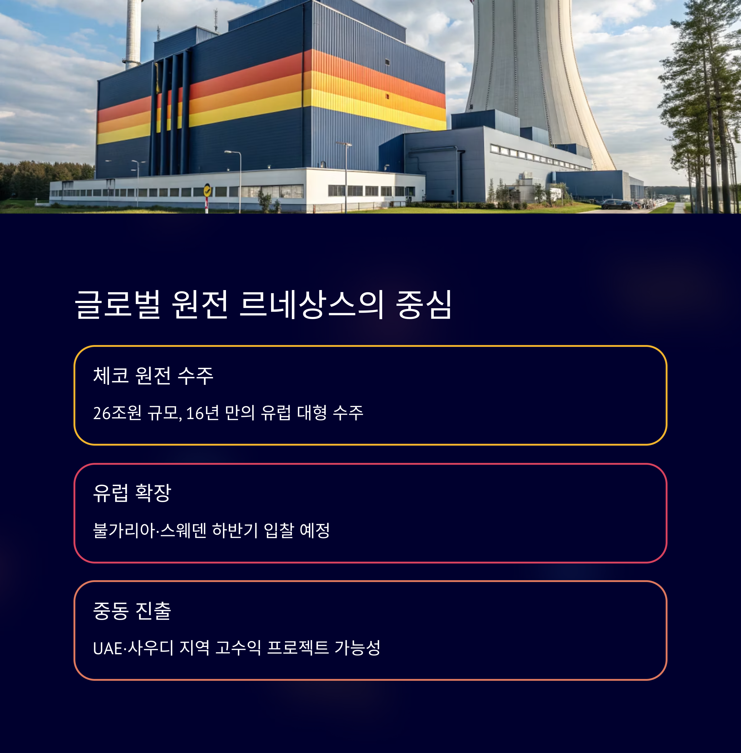 | 체코 원전 | 16년 만의 유럽 대형 수주 | 50조원 경제 파급 효과 추정 |