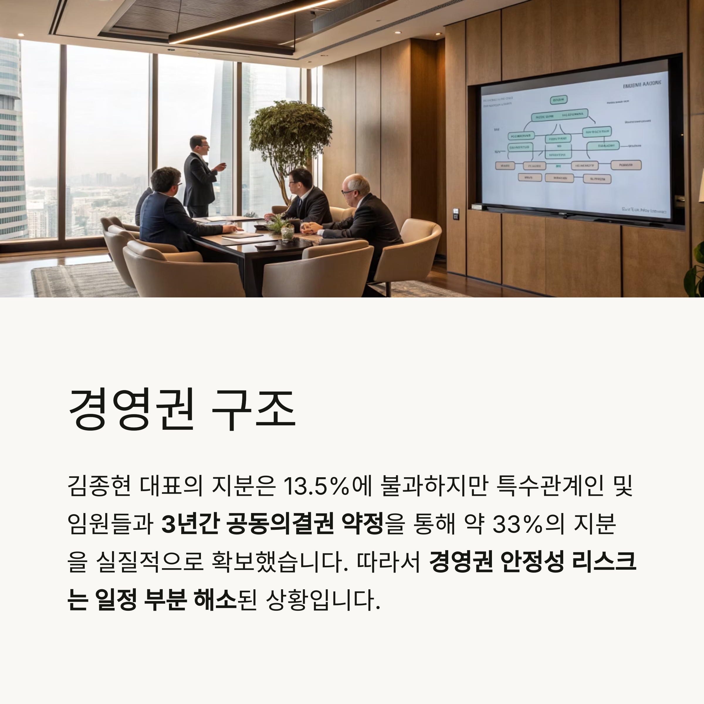 특수관계인 및 임원들과 3년간 공동의결권 약정을 통해