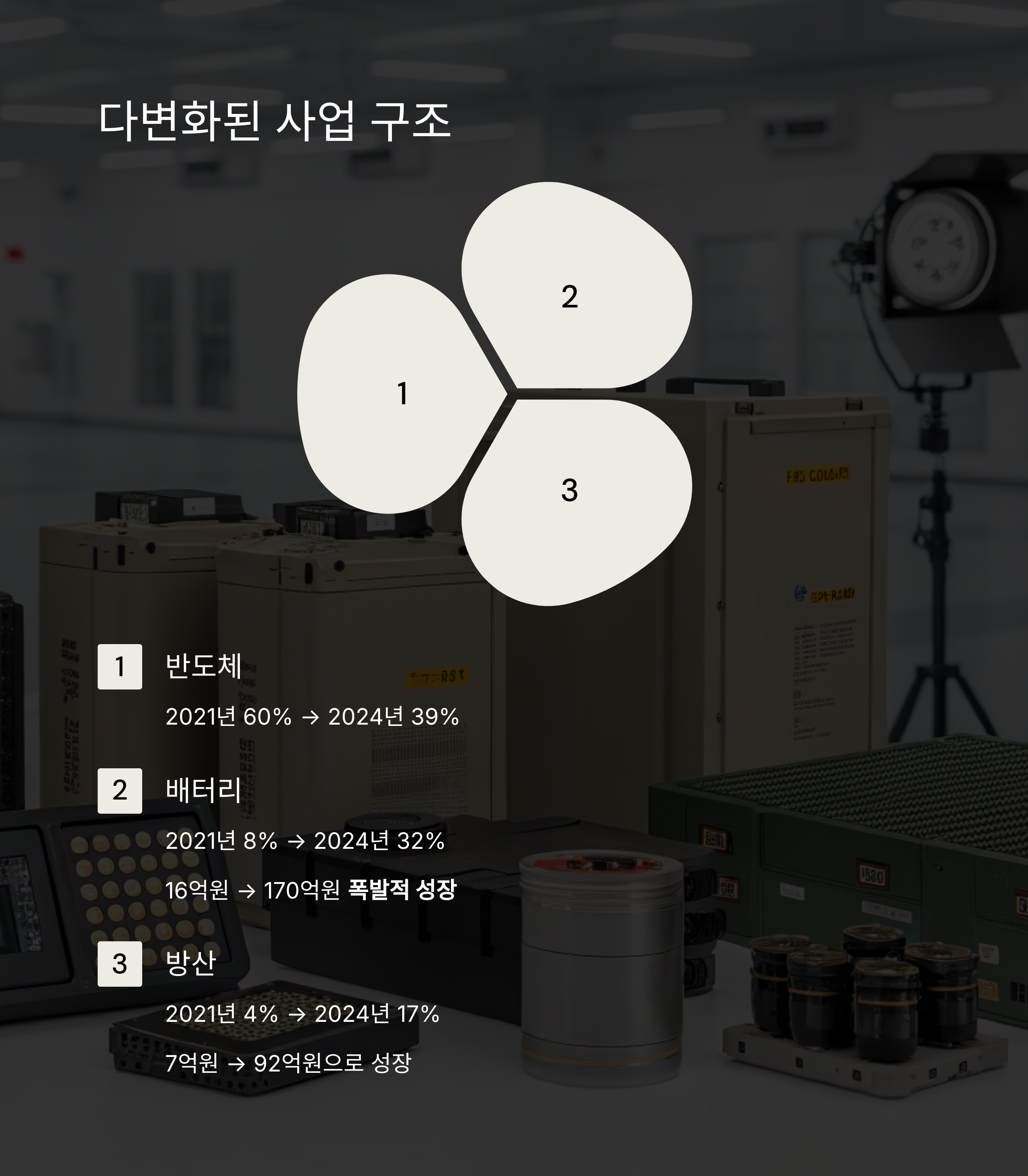 반도체, 배터리, 방산 등 다각화된 매출 구조를 확보하고 있는