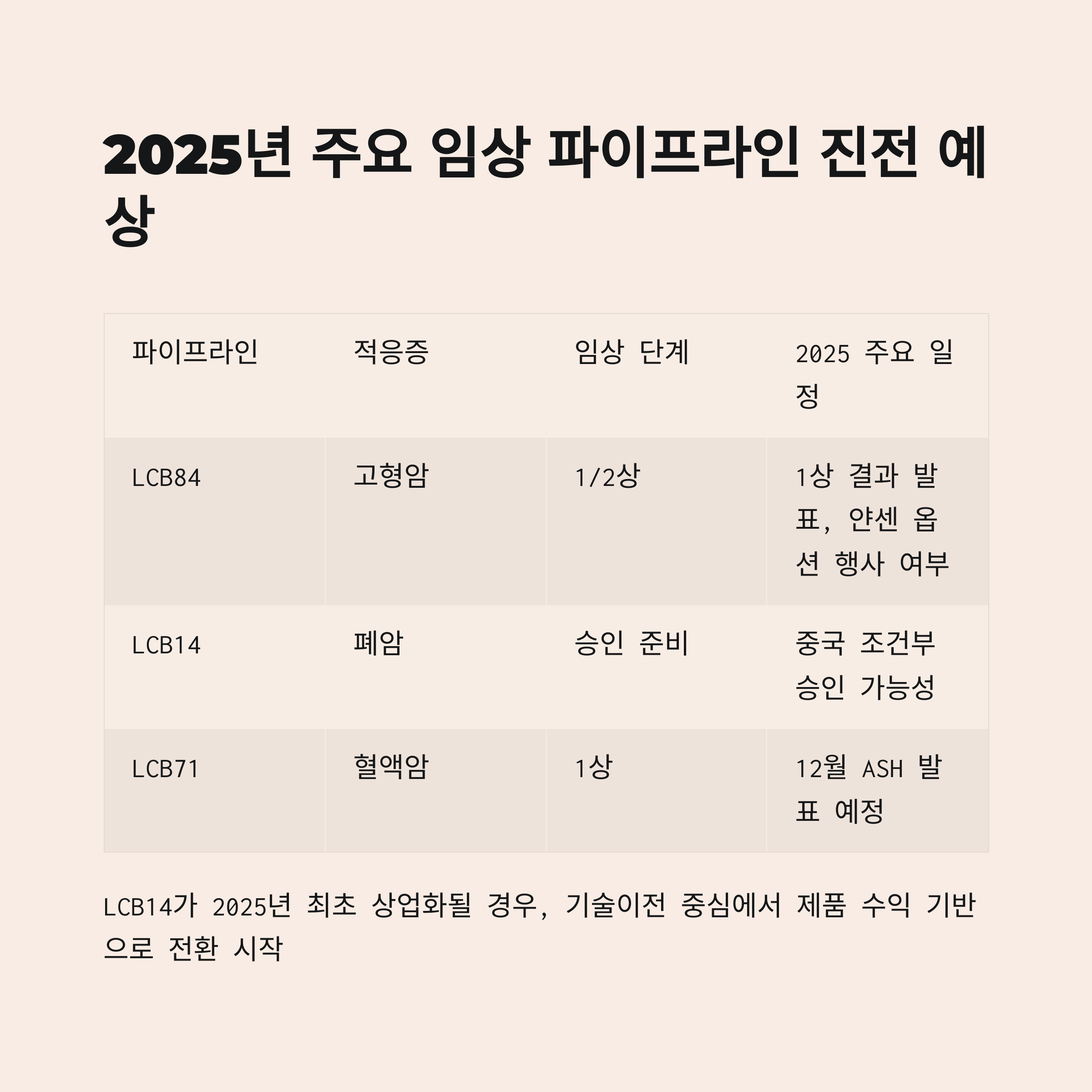 2025년은 LCB84·LCB14 성과 발표, 삼성바이오 협력 가시화,