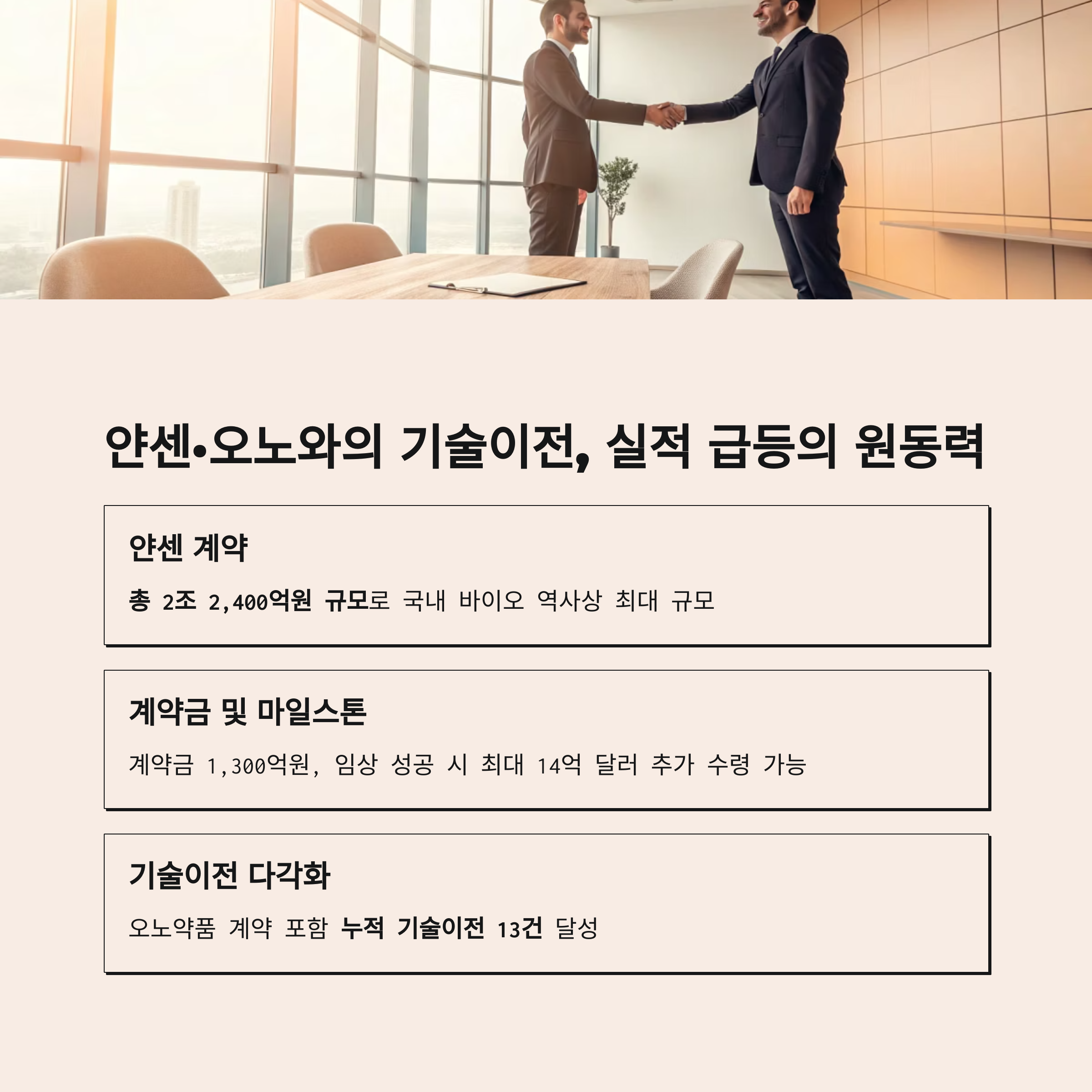얀센·오노와 기술이전, 실적 급등의 핵심 동력