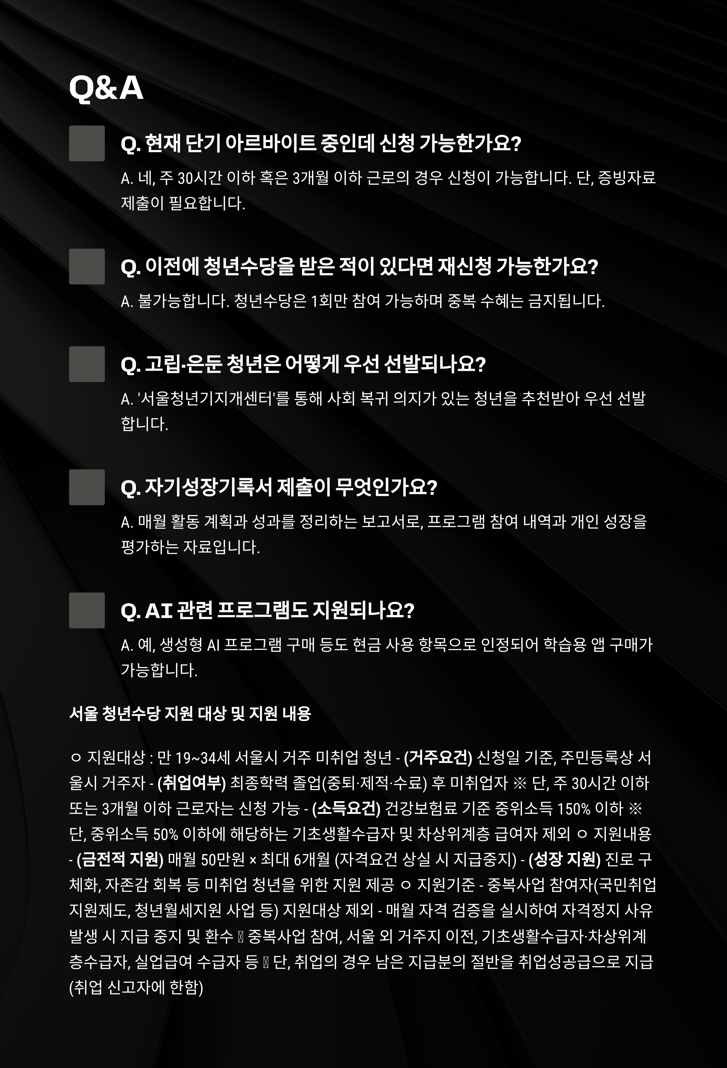 Q. 이전에 청년수당을 받은 적이 있다면 재신청 가능한가요?