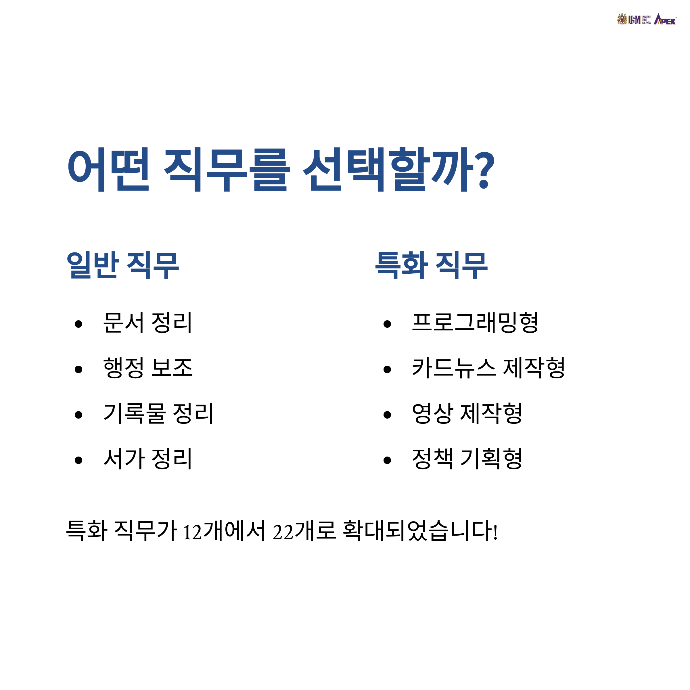 서울시는 기존보다 특화 직무의 비중을 대폭 확대했습니다. 지난 겨울 모집 당시 "단순 행정보다 전문 직무를 하고 싶다"는 의견이 많았기 때문인데요. 그래서 이번 여름엔 기존 12개에서 22개 특화 직무로 확대했습니다.