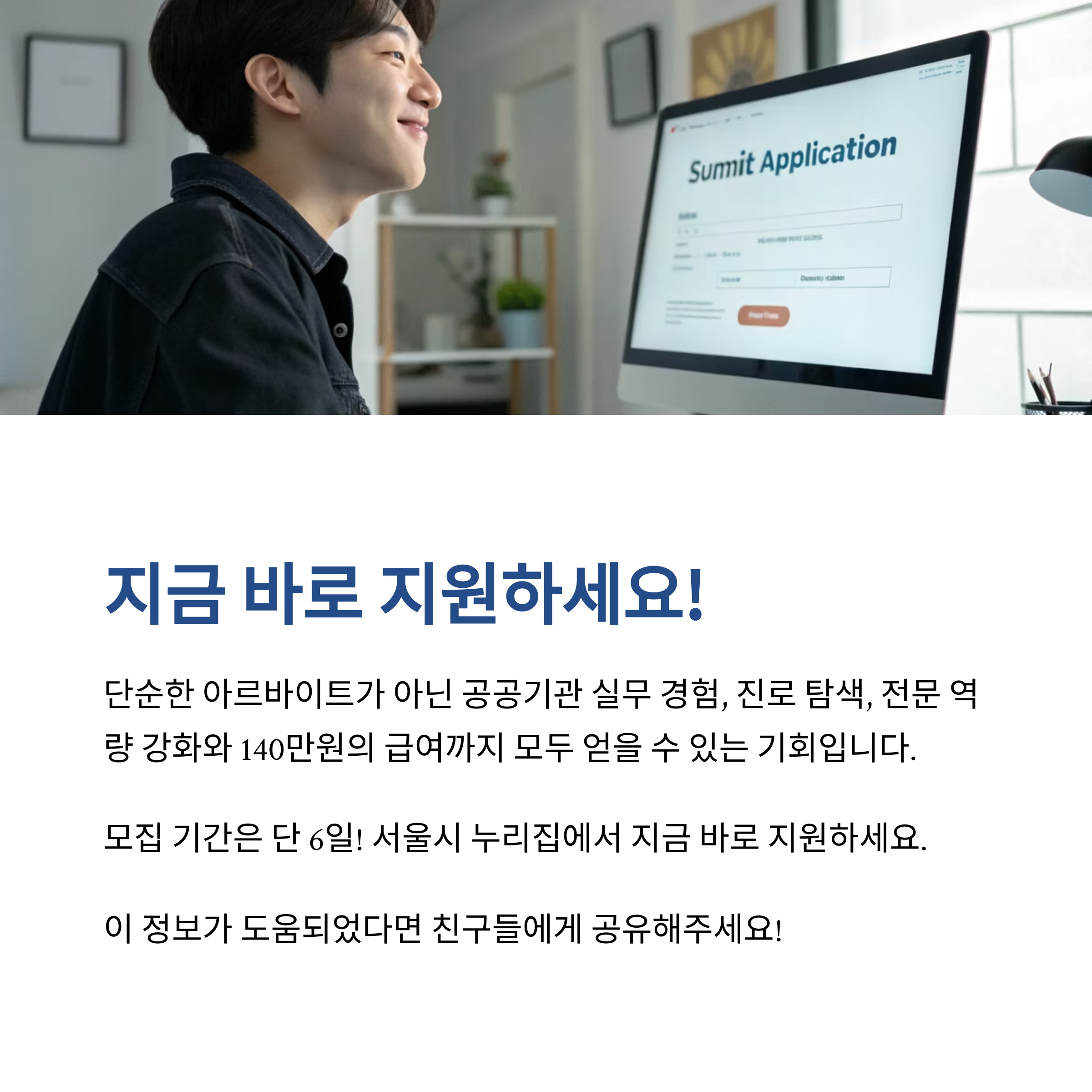 모집 기간은 단 6일! 지금 바로 서울시 누리집에 접속하여 지원서를 제출하세요.