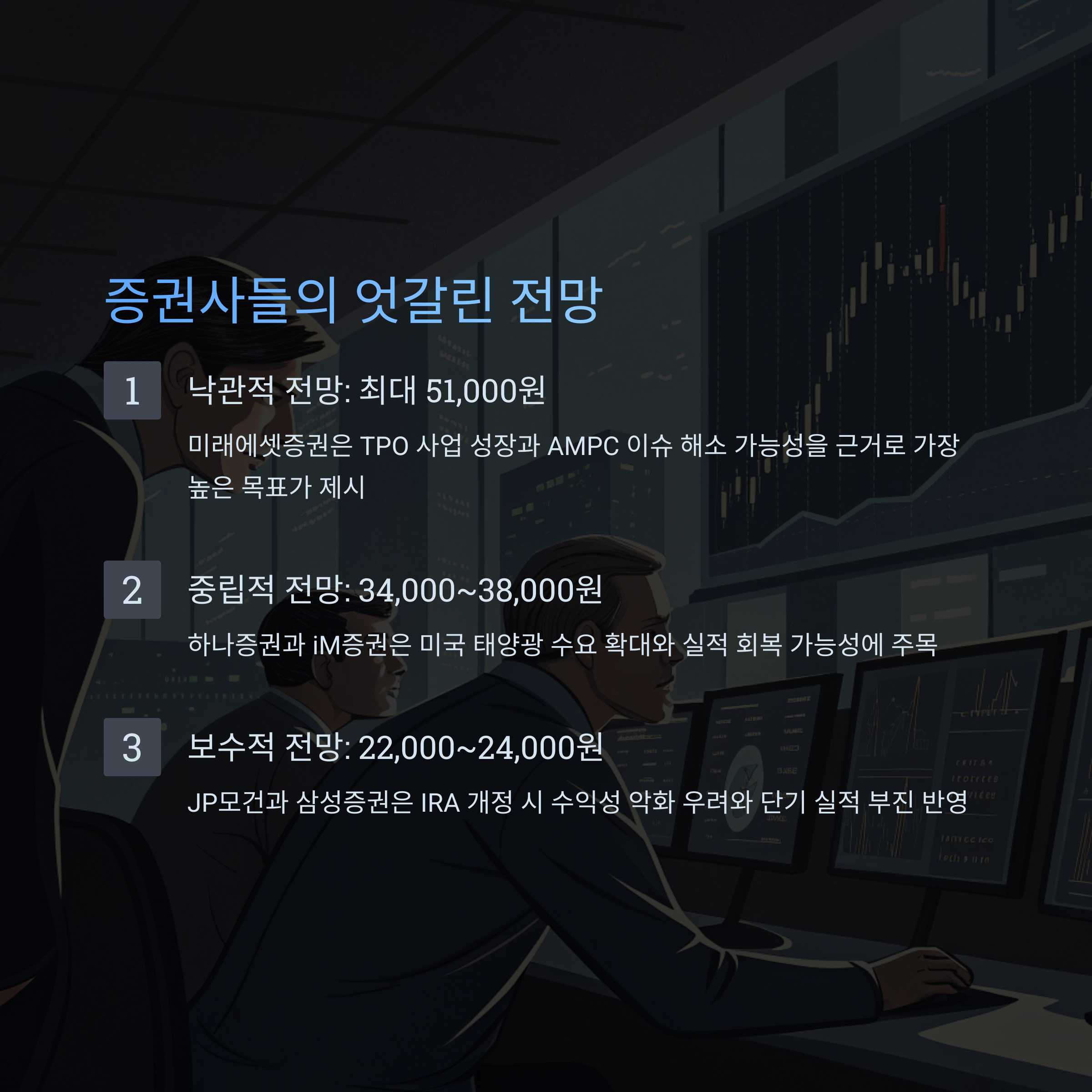 | JP모건 | 비중축소 | 22,000 | IRA 개정 시 미국 사업 수익성 악화 우려 |
