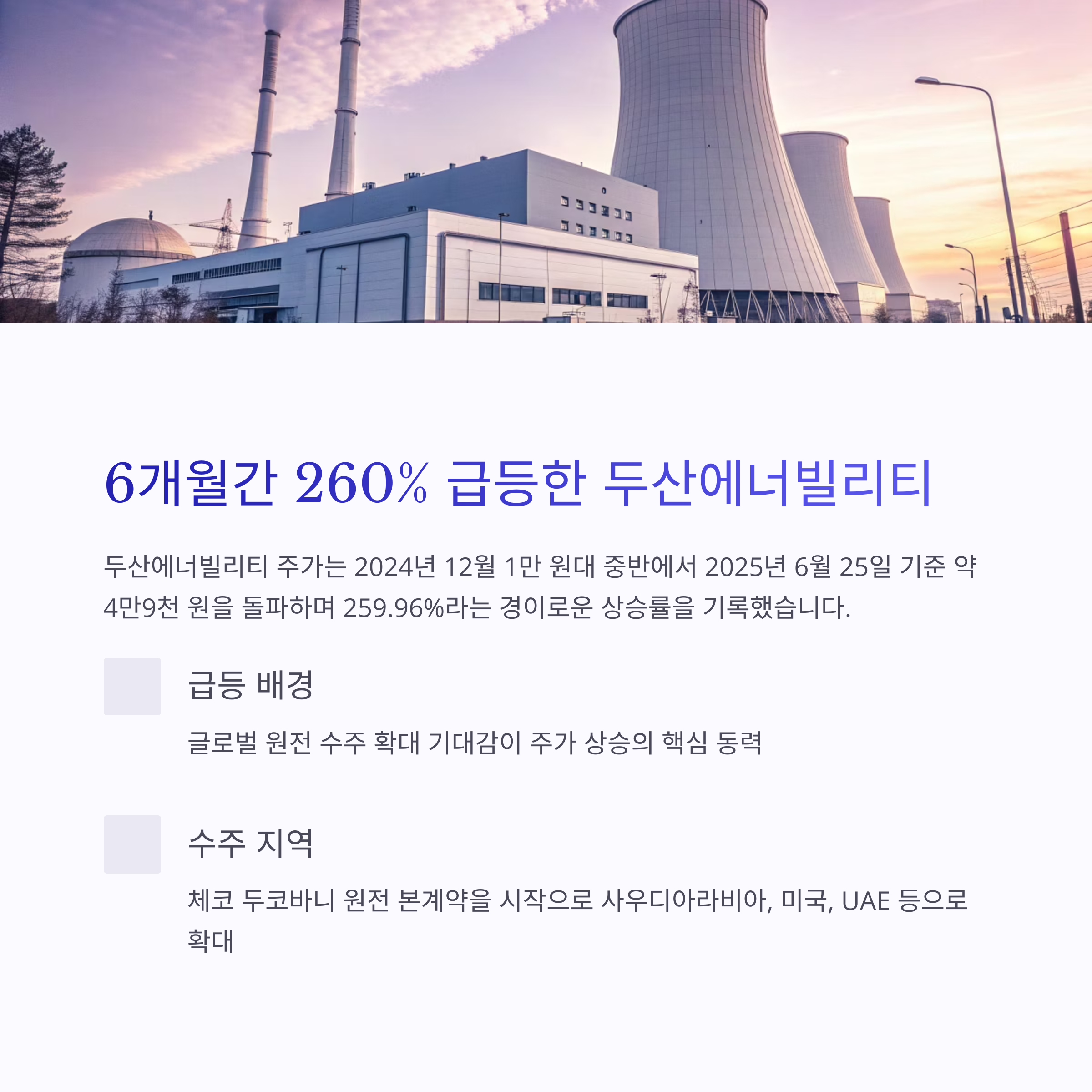 2025년 상반기, 국내 증시에서 가장 큰 주목을 받고 있는 종목 중 하나는 단연 두산에너빌리티입니다.