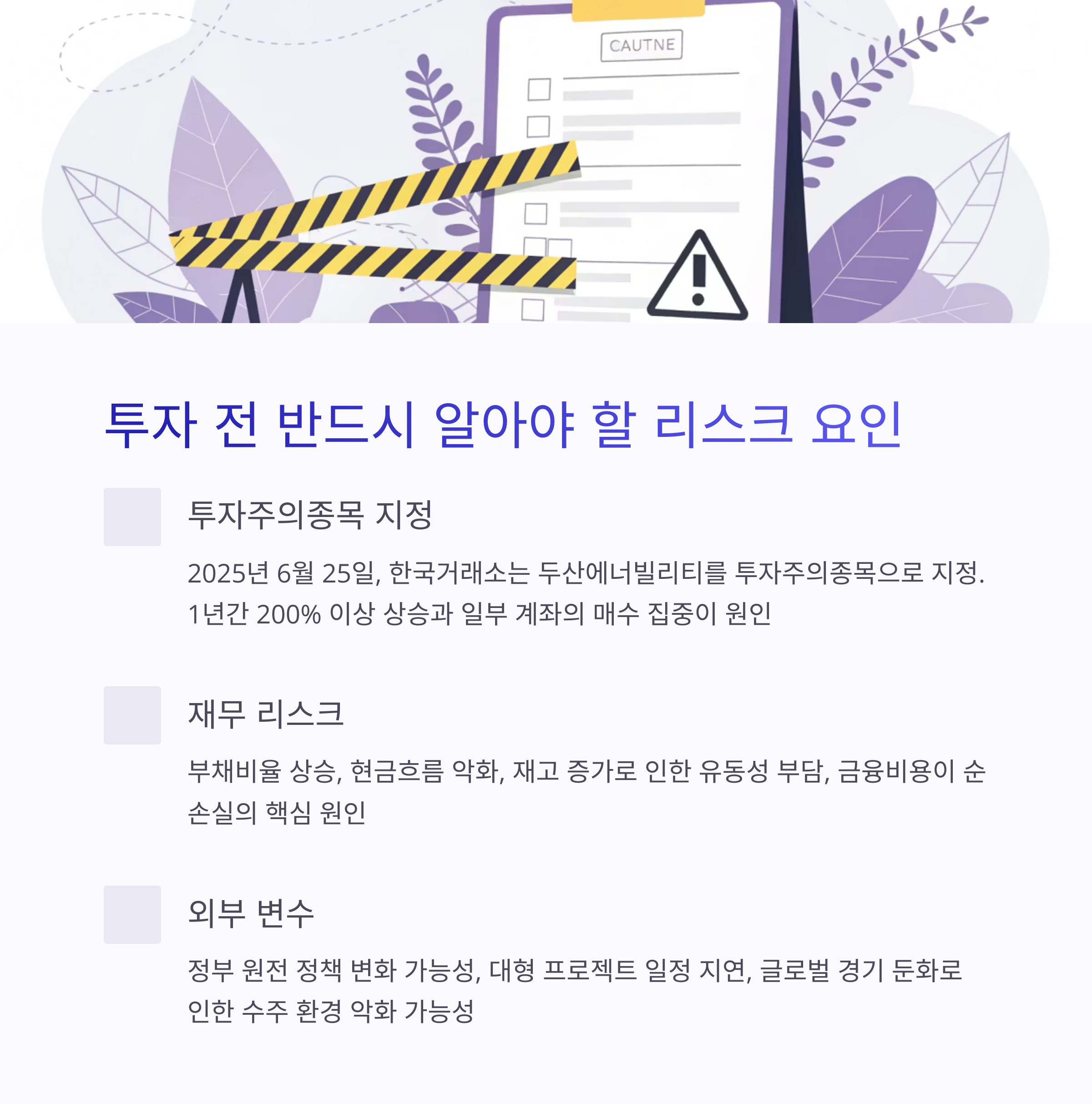 2025년 6월 25일, 한국거래소는 두산에너빌리티를 투자주의종목으로 지정했습니다.