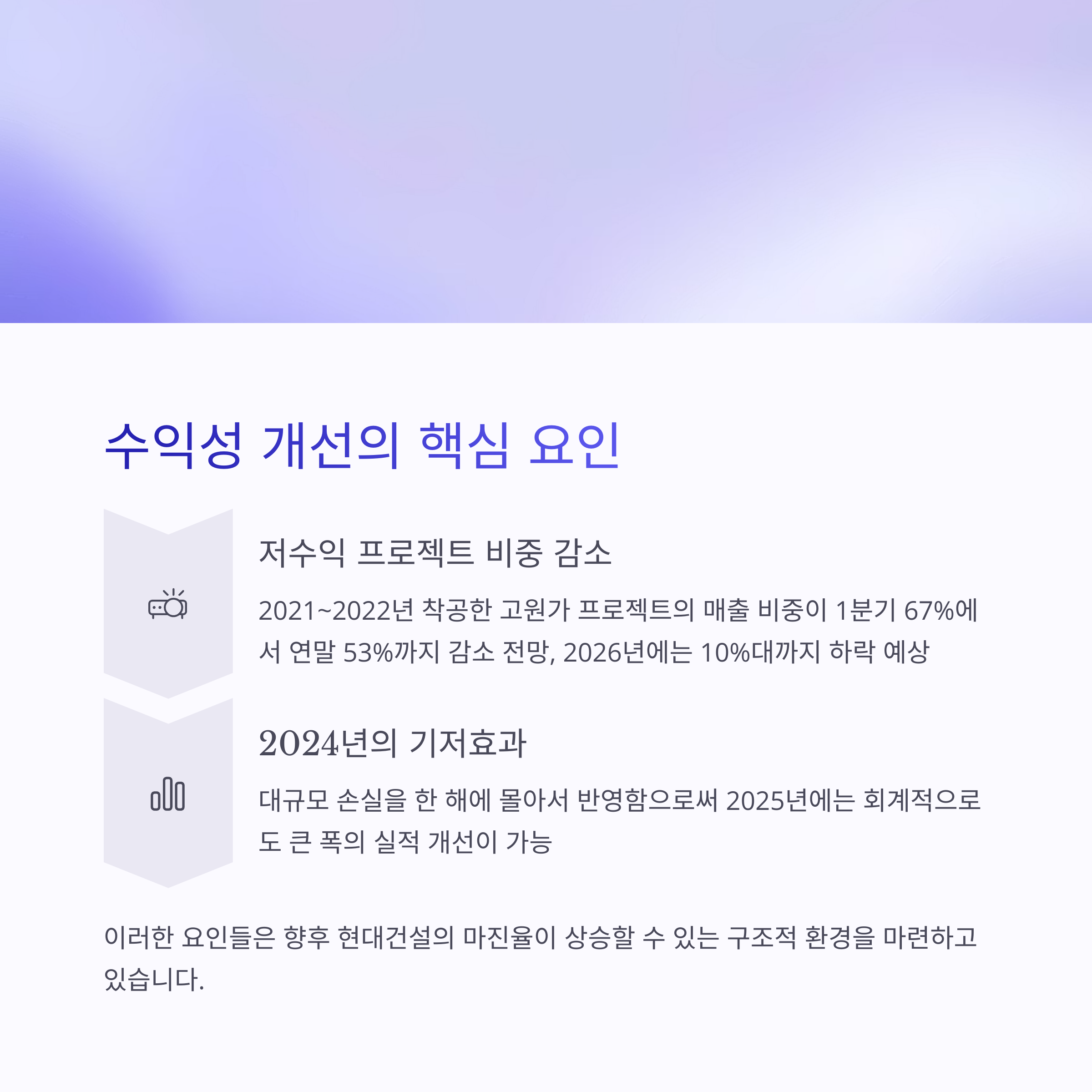 수익성 개선 배경: 기저효과 + 저수익 현장 정리
