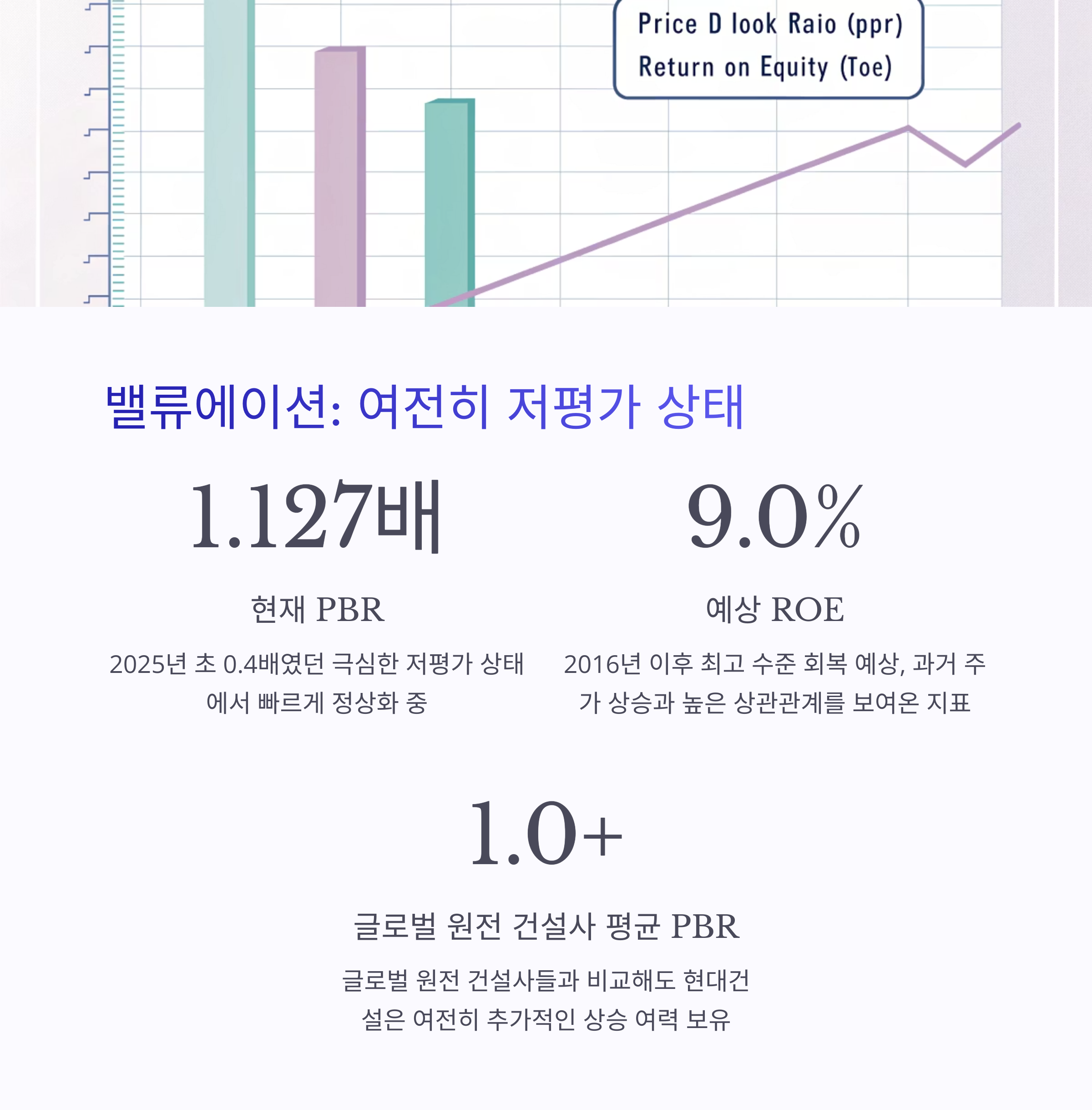 - 글로벌 원전 건설사들의 평균 PBR이 1.0 이상인 점을 감안하면, 현대건설은 여전히 추가적인 상승 여력을 보유하고 있습니다.