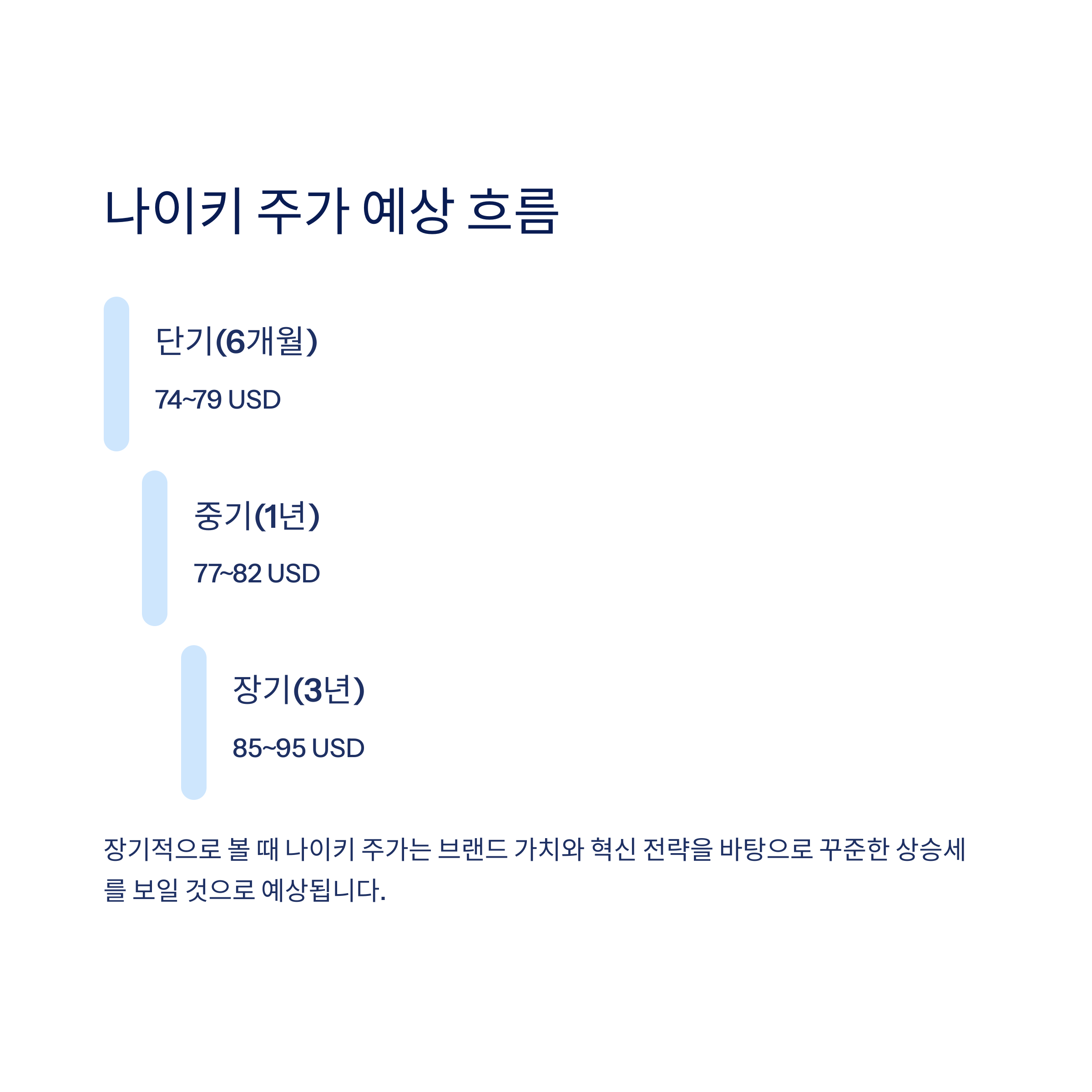| 주가 흐름 예상 | 74~79 USD | 77~82 USD | 85~95 USD |