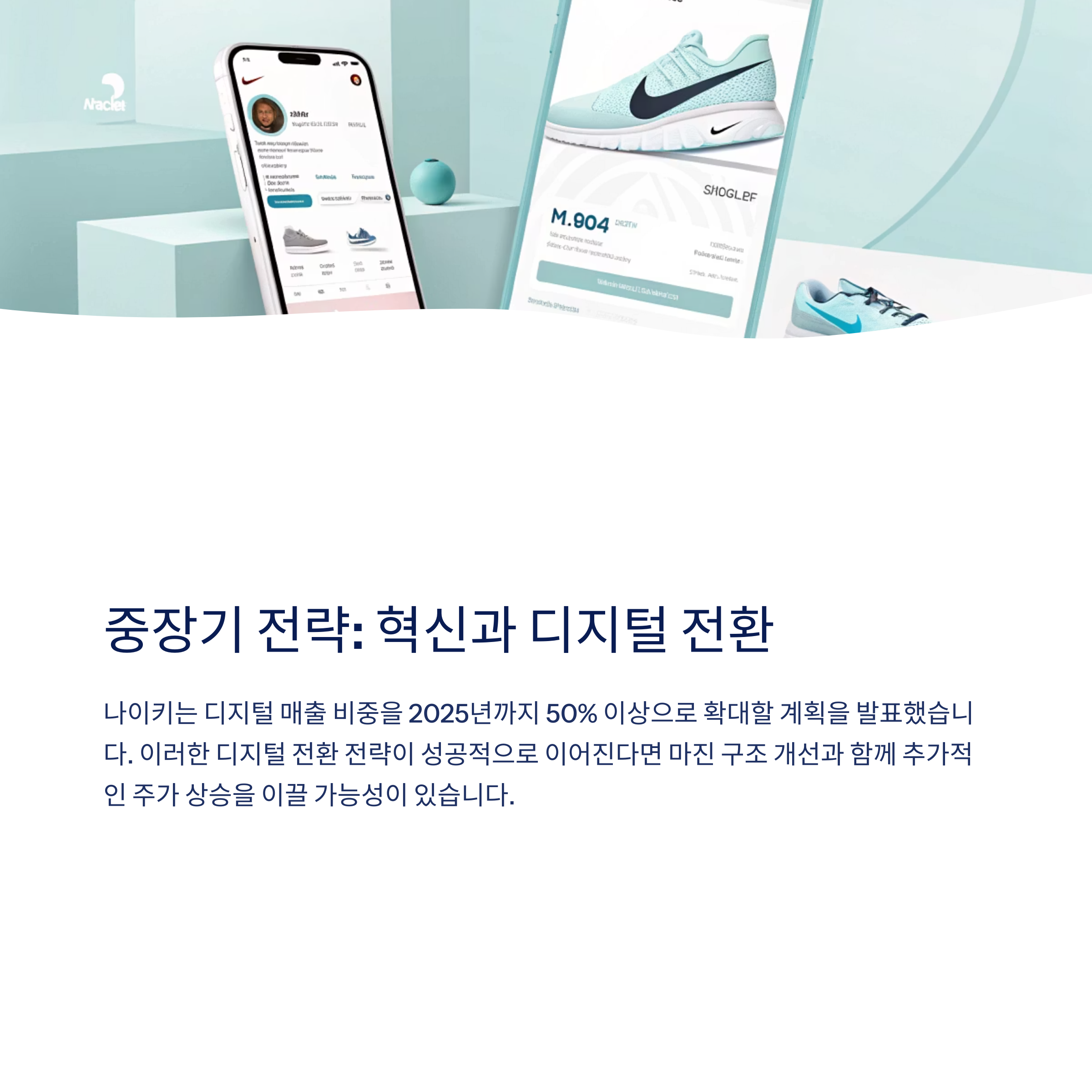 나이키는 디지털 매출 비중을 2025년까지 50% 이상으로 확대할 계획을