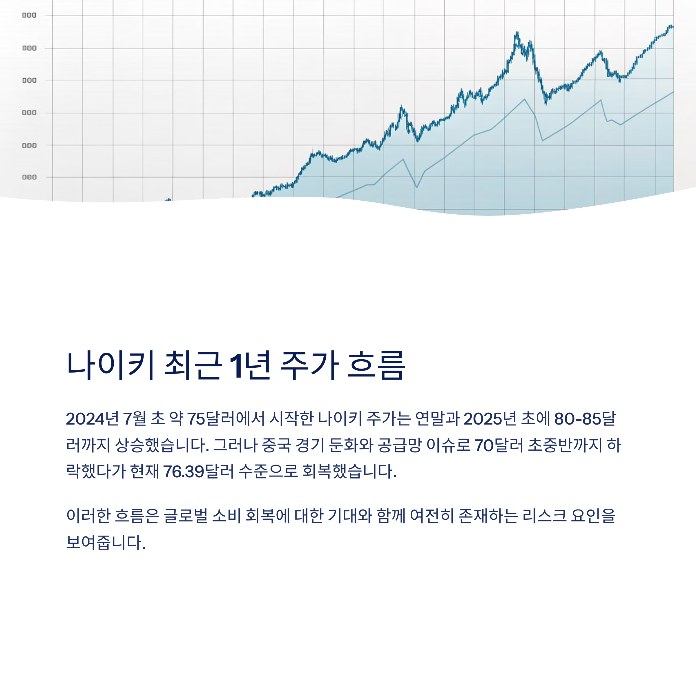 나이키(NKE) 주가는 지난 1년 동안 횡보와 완만한 상승세를 반복하며 투자자들의 관심을 모았습니다. 현재 주가는 약 76.39달러로, 향후 12개월 애널리스트 평균 목표주가인 77~79달러와 비교해 약 3~4% 정도의 추가 상승 여력이 있는 상황입니다. 이번 글에서는 나이키 주가의 과거 흐름과 현재 컨센서스, 그리고 앞으로의 전망과 전략을 꼼꼼히 살펴보겠습니다.