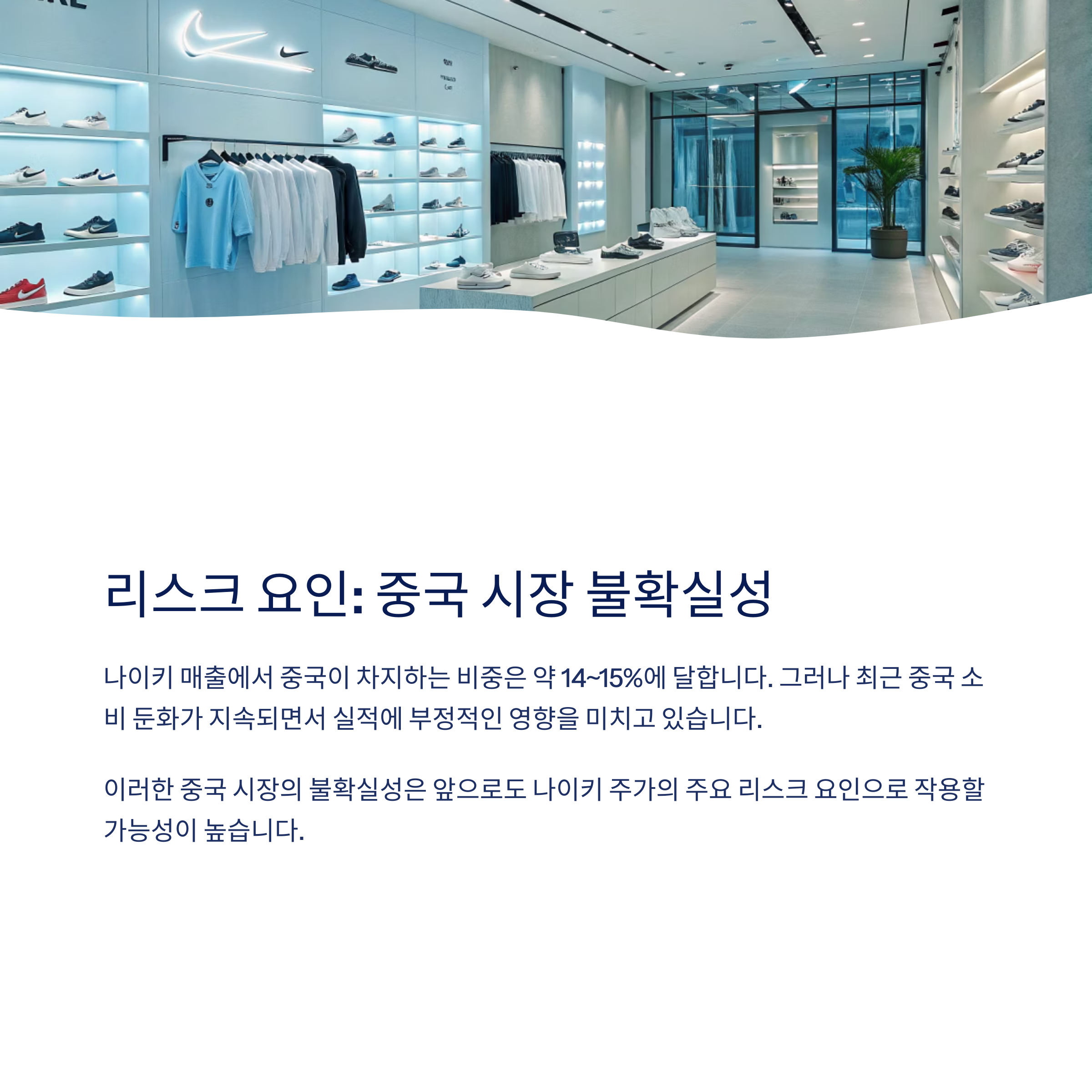 나이키 매출에서 중국이 차지하는 비중은 약 14~15%에 달합니다.