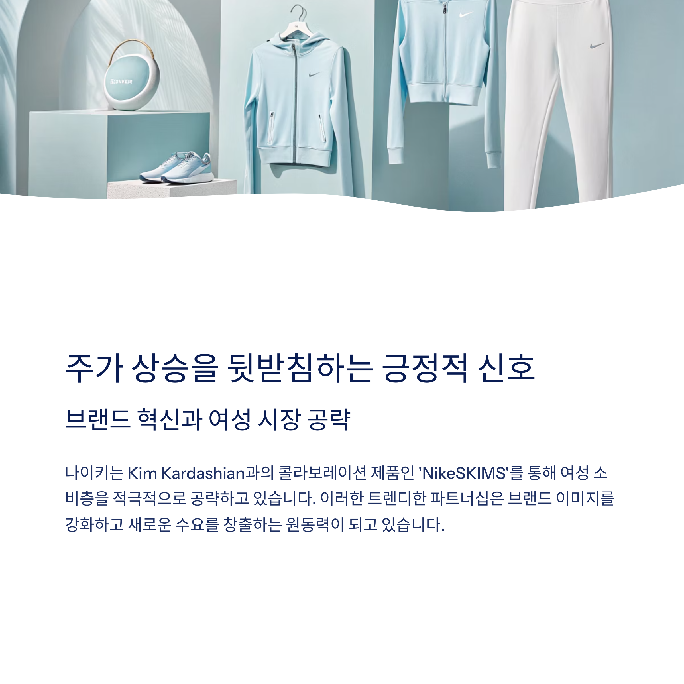 나이키는 Kim Kardashian과의 콜라보 제품인 ‘NikeSKIMS’를 통해 여성 소비층을