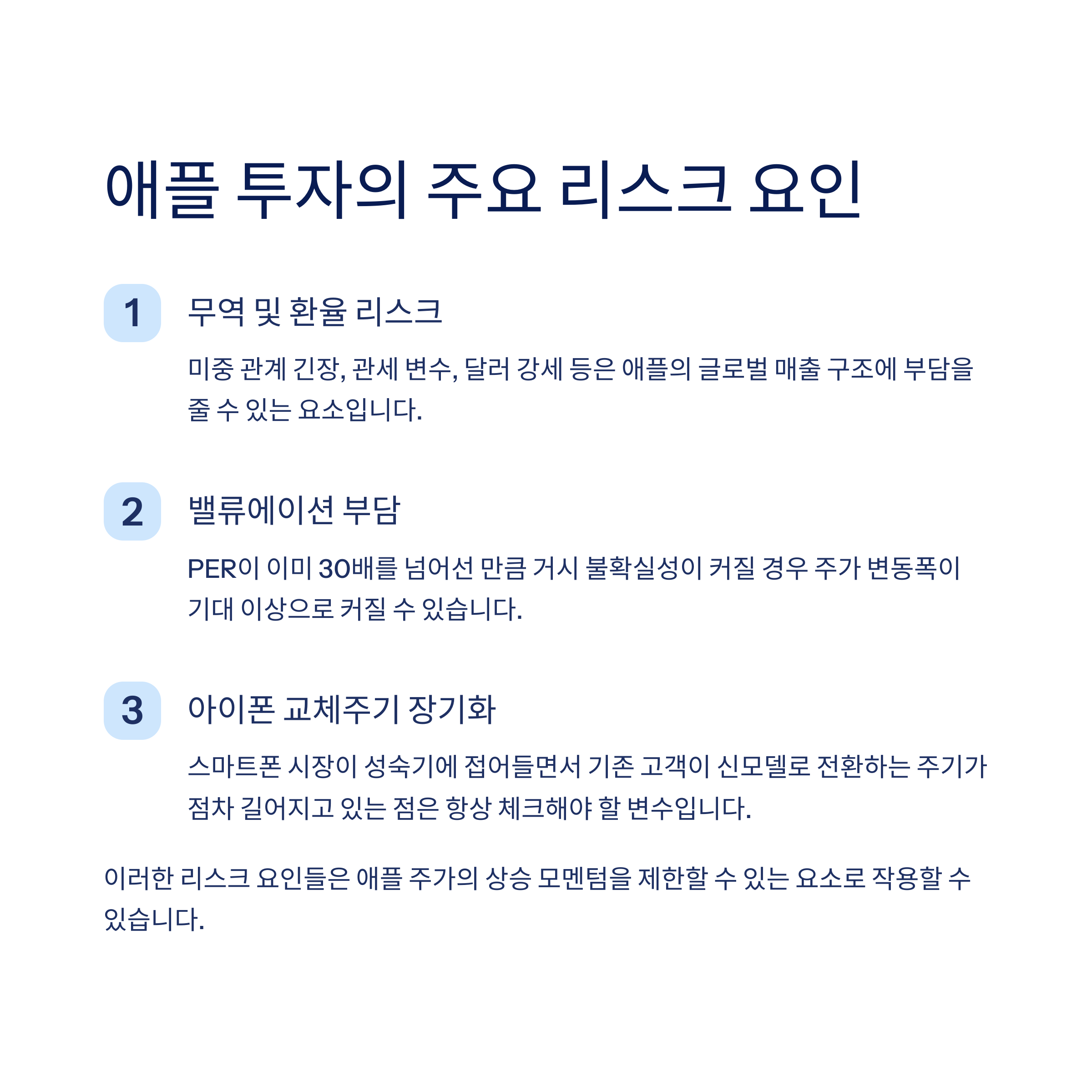 애플의 글로벌 매출 구조에 부담을 줄 수 있는 요소입니다.