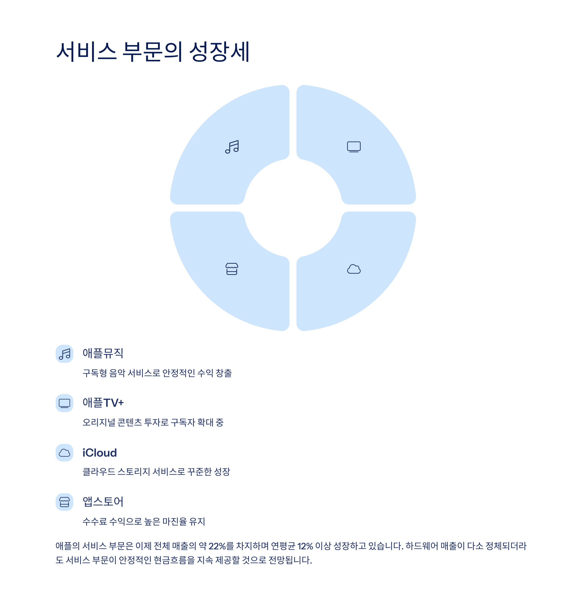 서비스 부문은 이제 전체 매출의 약 22%를 차지하며