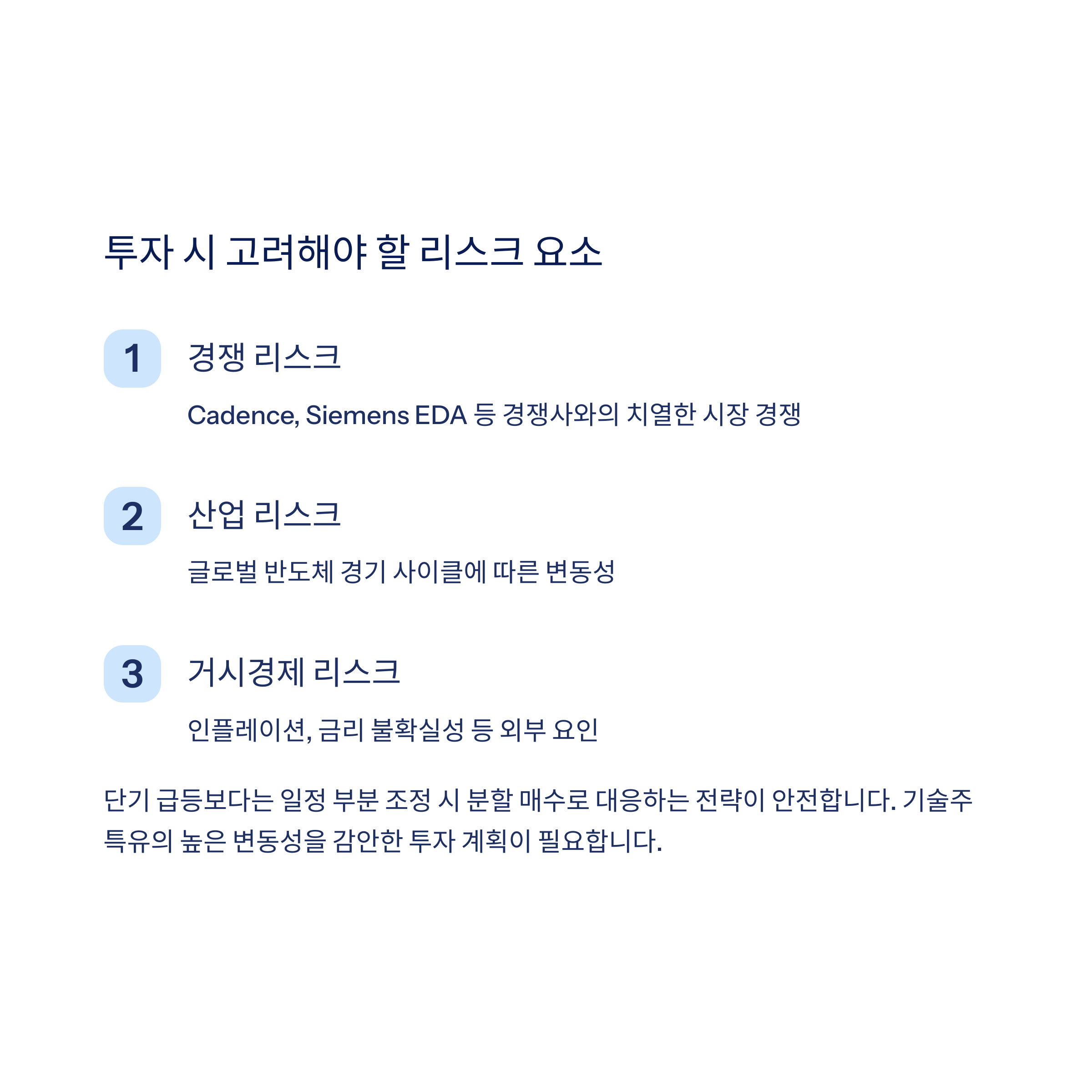 EDA 시장은 Cadence, Siemens EDA 등과의 경쟁이 치열합니다.