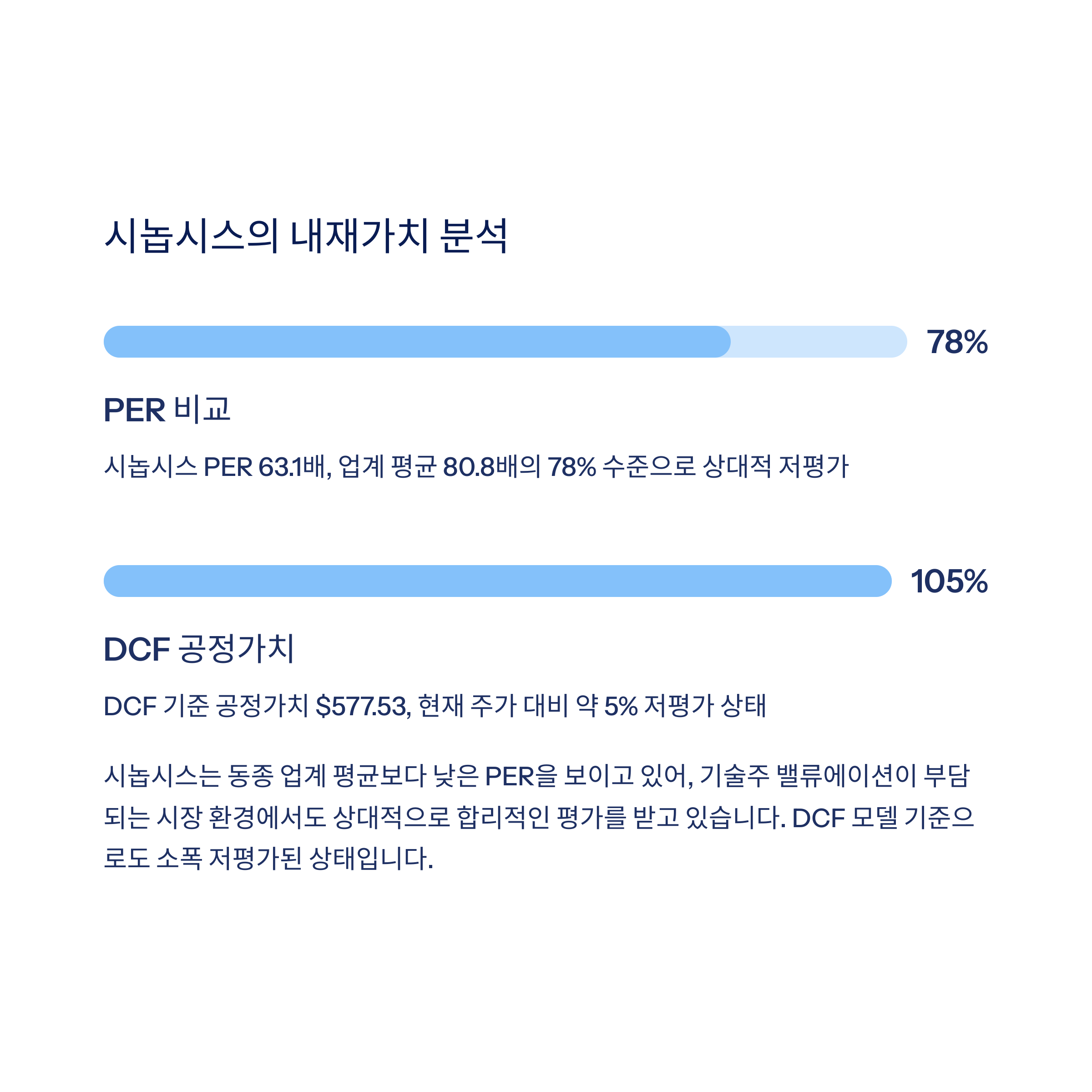 시놉시스의 현재 PER(주가수익비율)은 약 63배로,