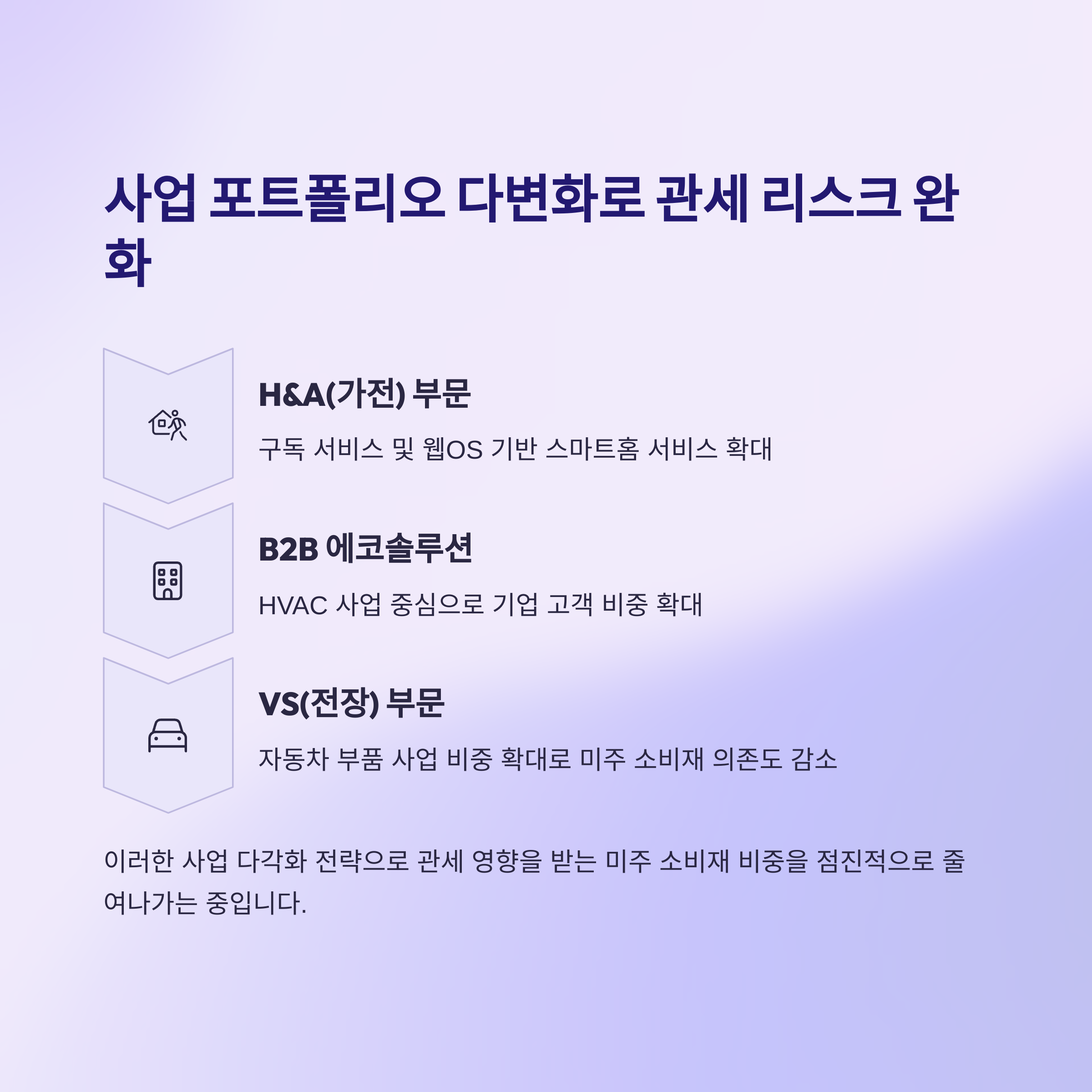 사업 포트폴리오 다변화, 관세 의존도 점진적 완화