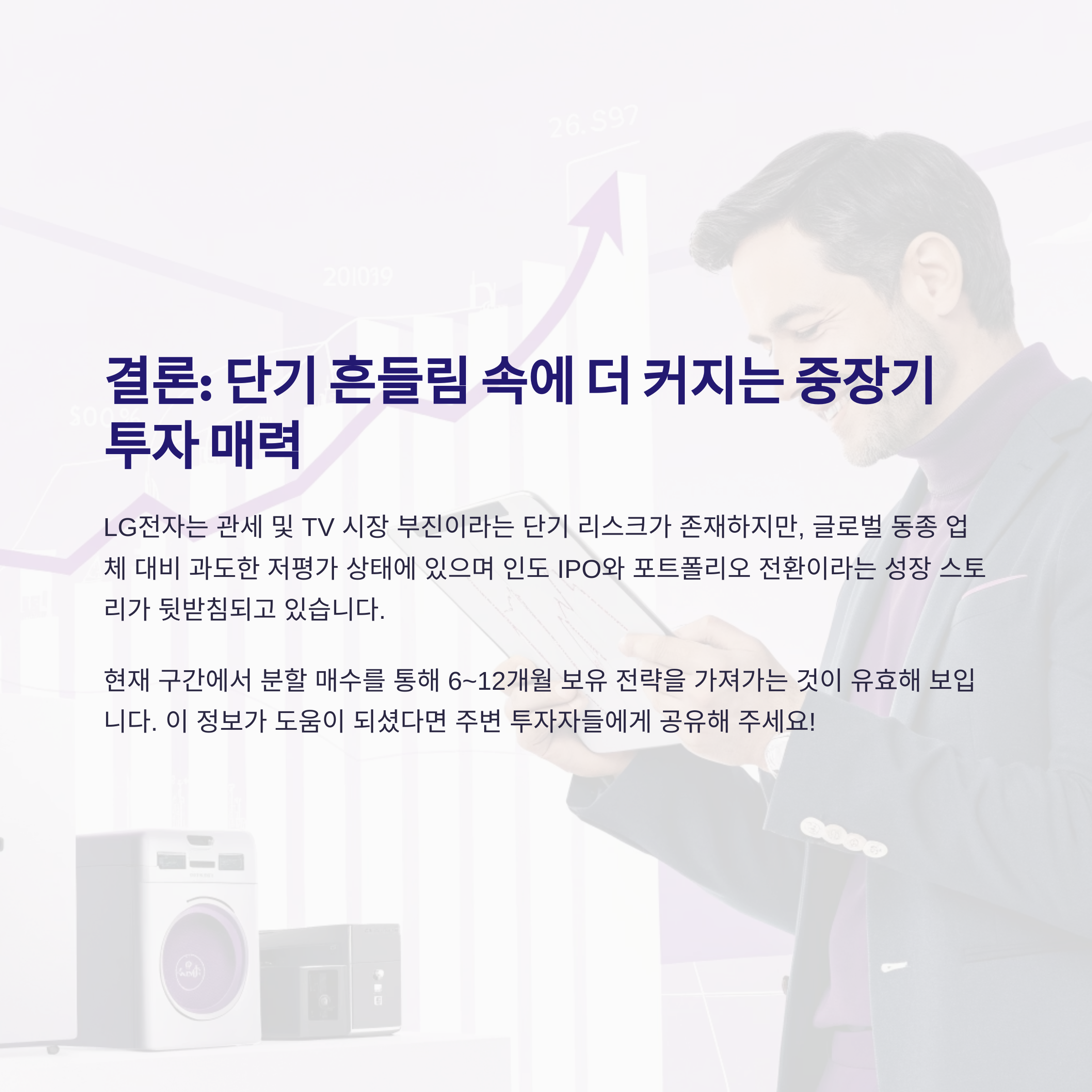 LG전자는 관세 및 TV 시장 부진이라는 단기 리스크가 존재하지만,