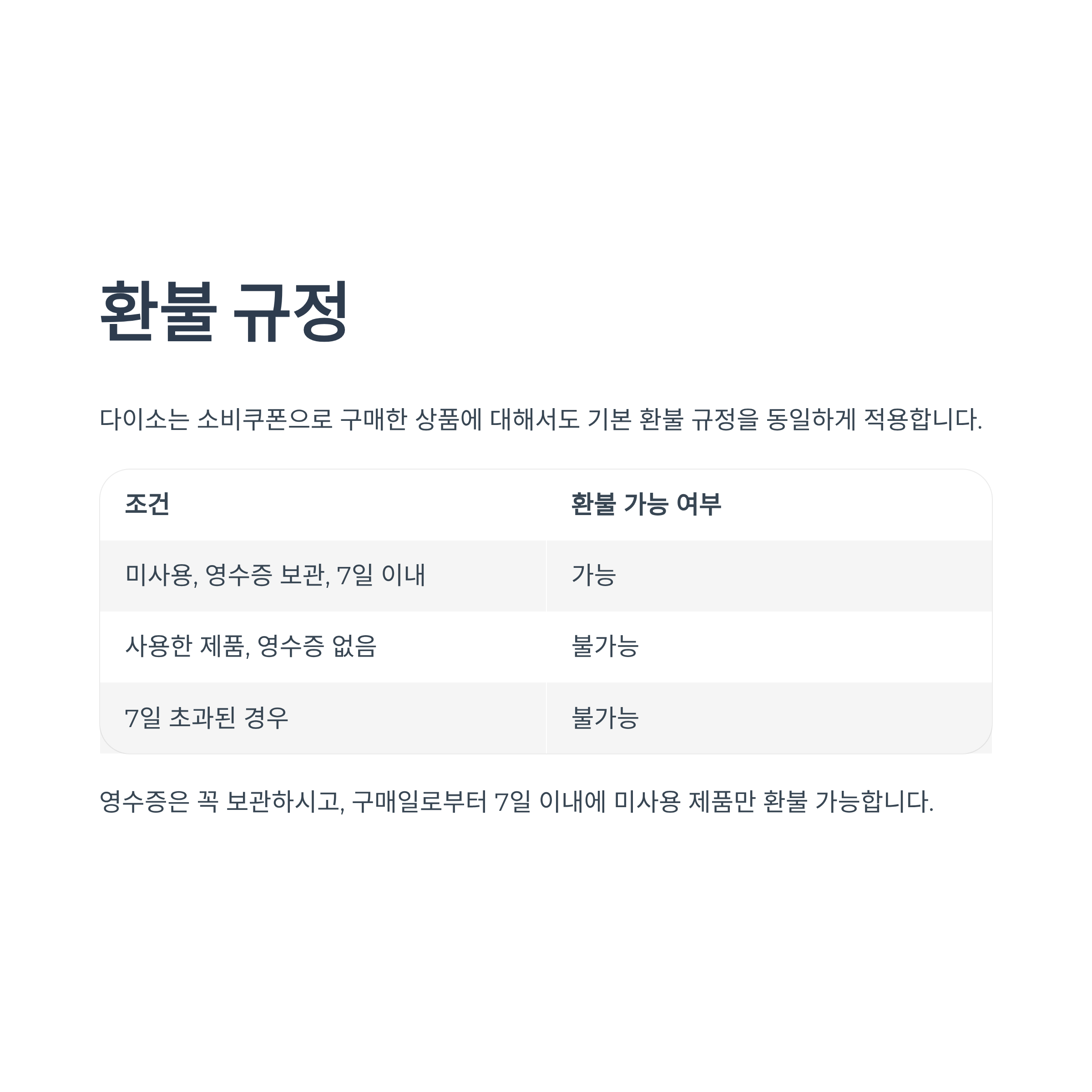 | 미사용, 영수증 보관, 7일 이내 | 가능 |
