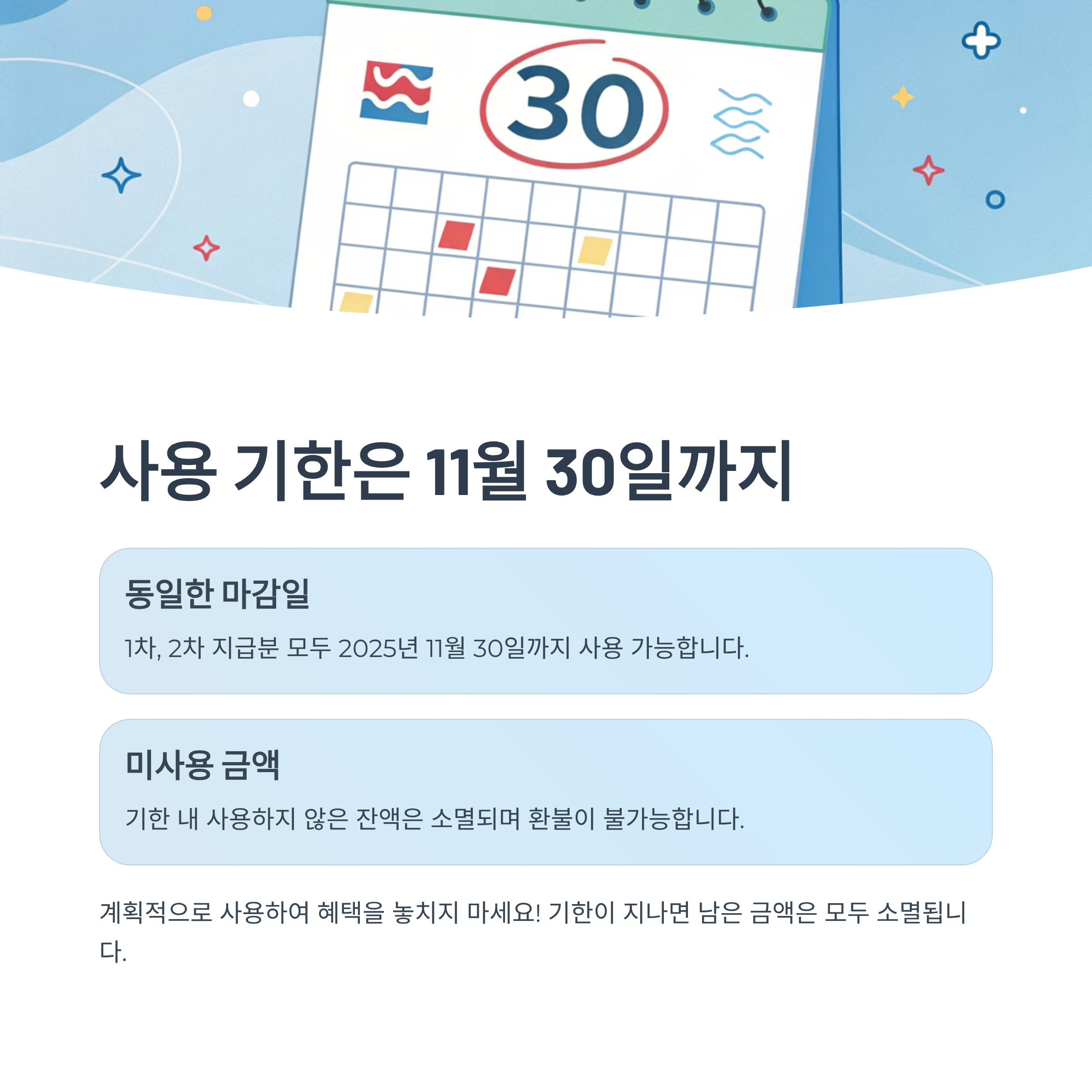 사용 기한은 11월 30일까지, 꼭 기억하세요