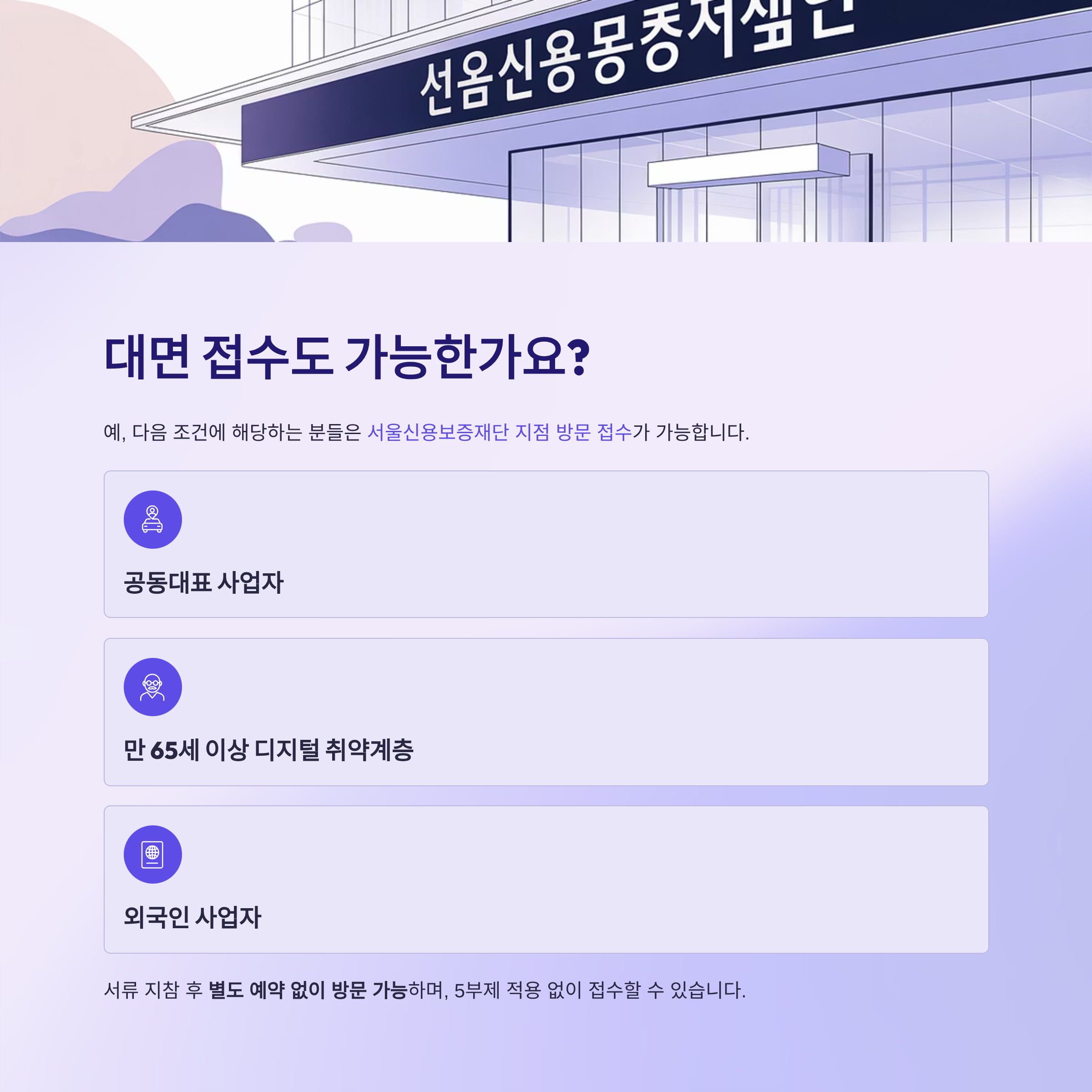 예, 다음 조건에 해당하는 분들은 서울신용보증재단 지점 방문 접수가 가능합니다.