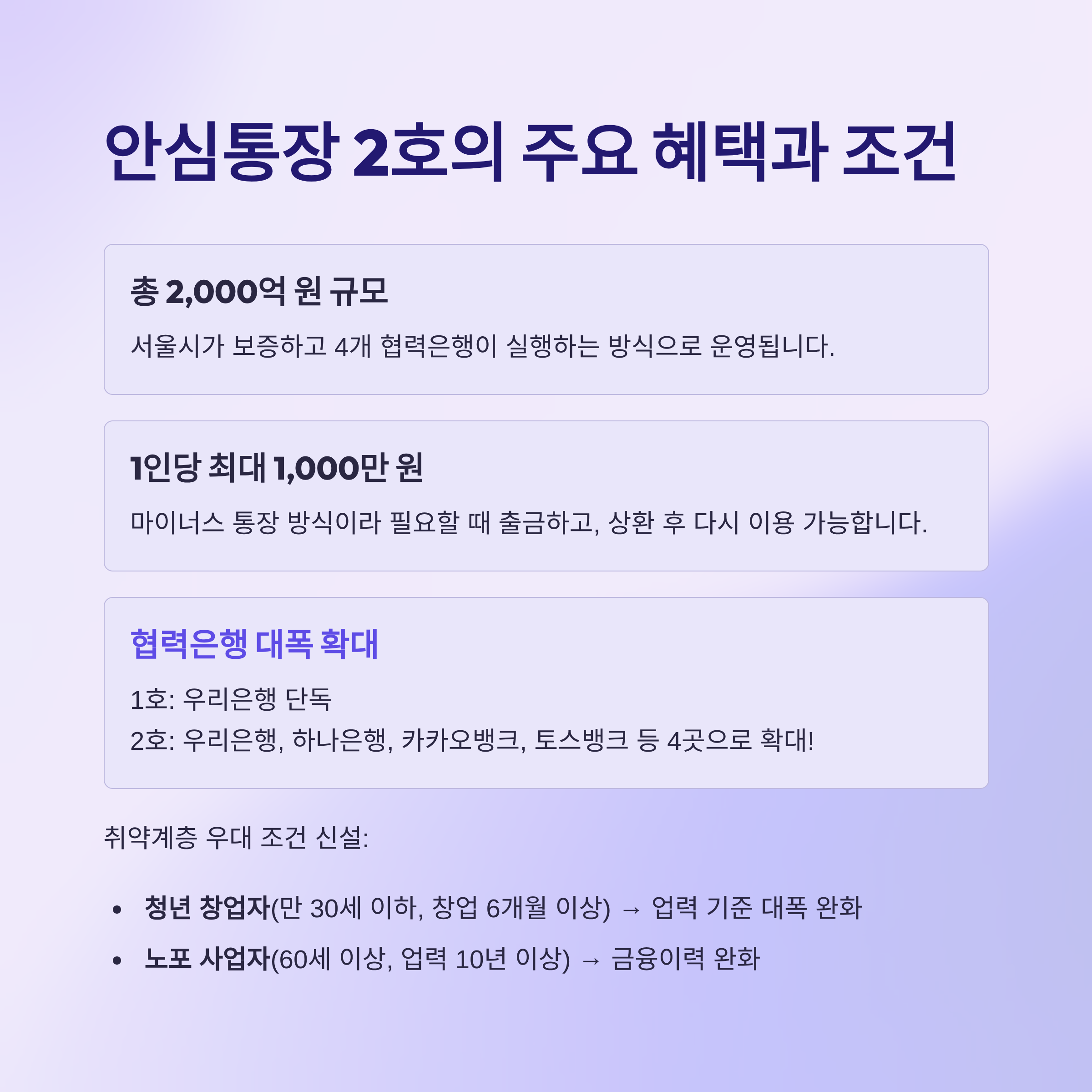 서울시의 안심통장 2호는 단순한 대출 상품이 아닙니다.