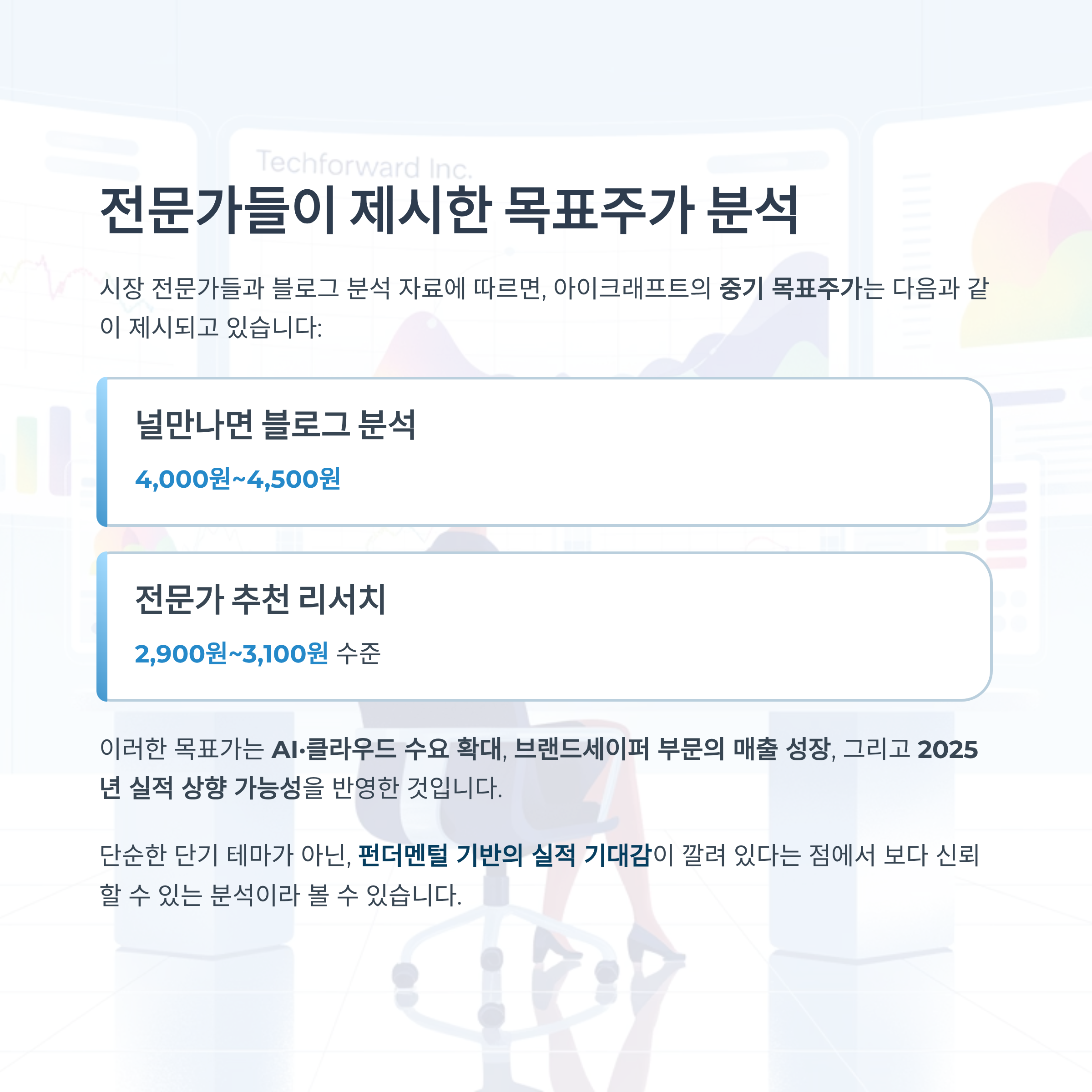 이러한 목표가는 AI·클라우드 수요 확대, 브랜드세이퍼 부문의 매출 성장, 그리고 2025년 실적 상향 가능성을 반영한 것으로 해석됩니다.