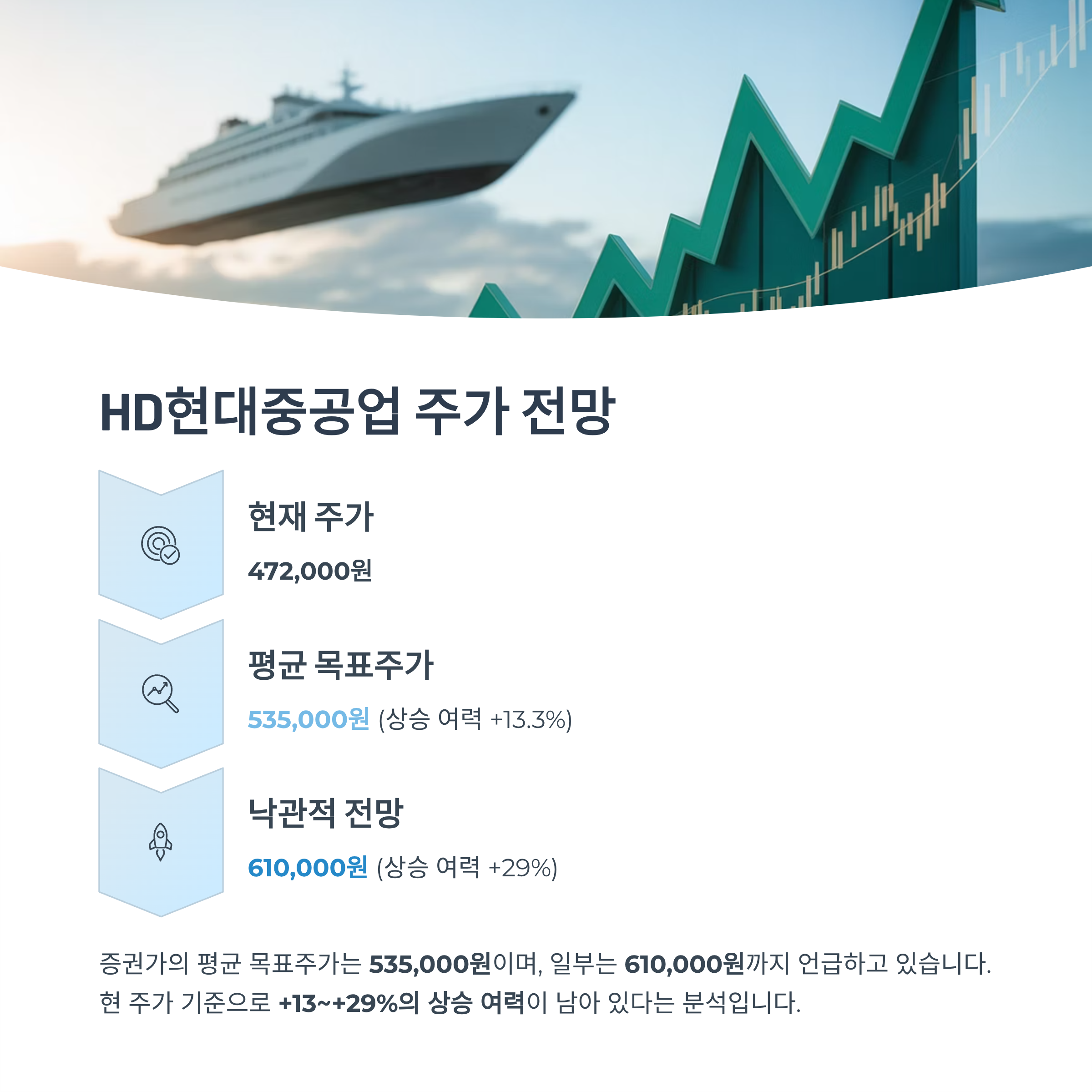 HD현대중공업 주가 전망은 업황, 수주, 실적, 기관의 목표주가까지 종합적으로 볼 때 긍정적인 흐름을 유지하고 있습니다.
