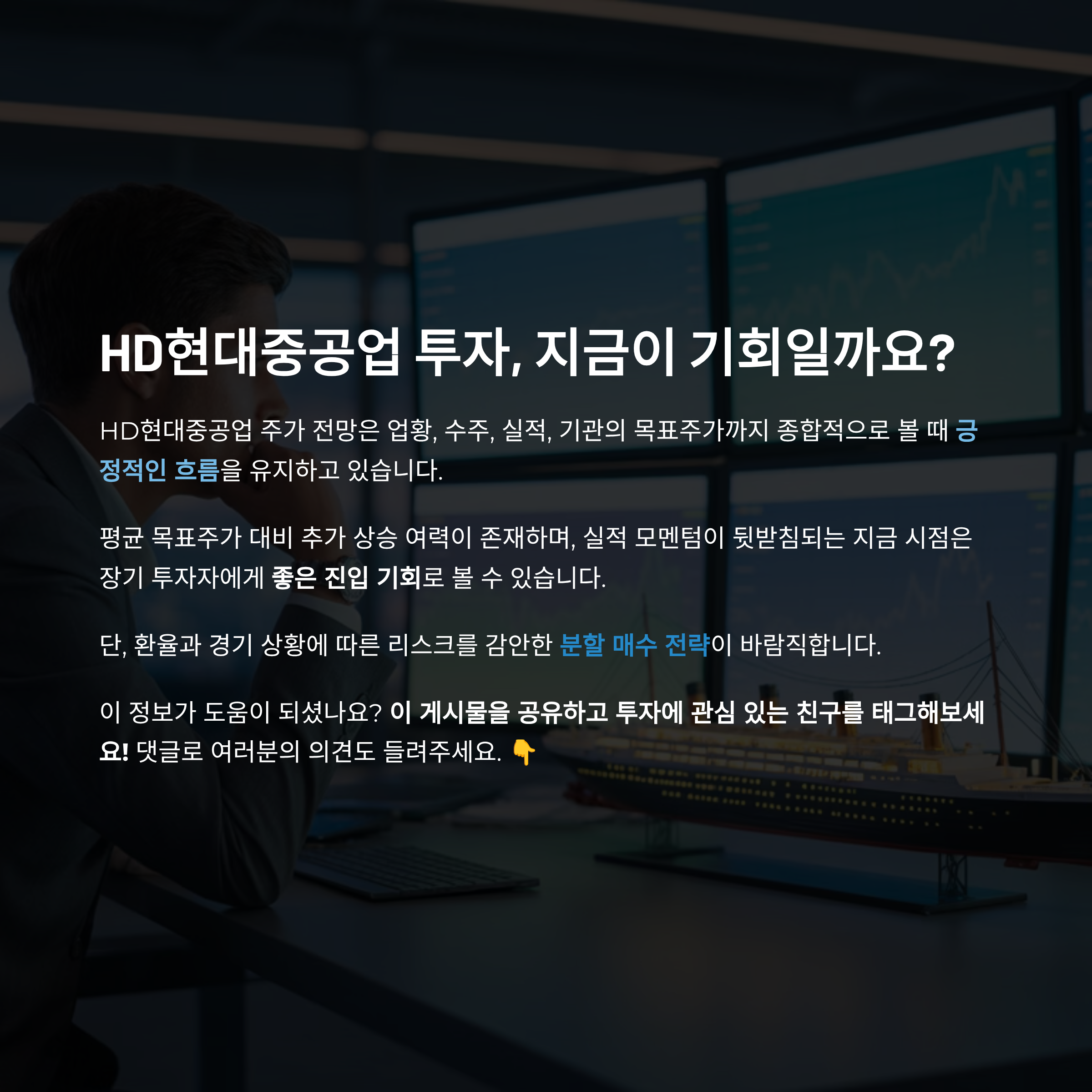 - 단기적 변동성은 존재하나, 조선업 호황과 실적 개선을 기반으로 한 상승 흐름은 중장기적으로 유효합니다.