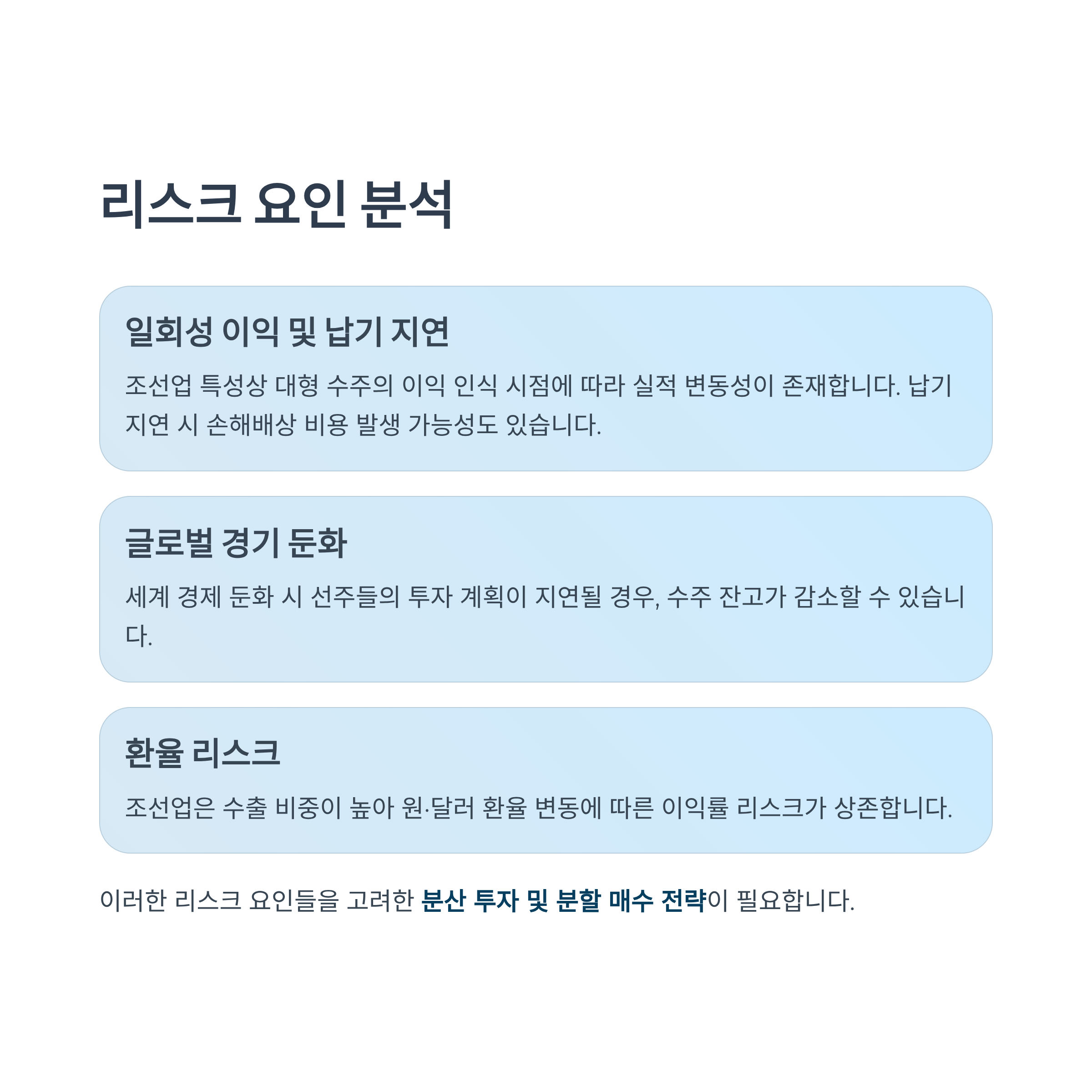 조선업 특성상 대형 수주의 이익 인식 시점에 따라 실적 변동성이 존재합니다.