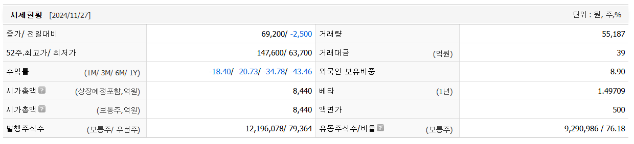 | 한글과컴퓨터 주가 변동에 따른 분석 리포트 (0) | 2024.11.29 |