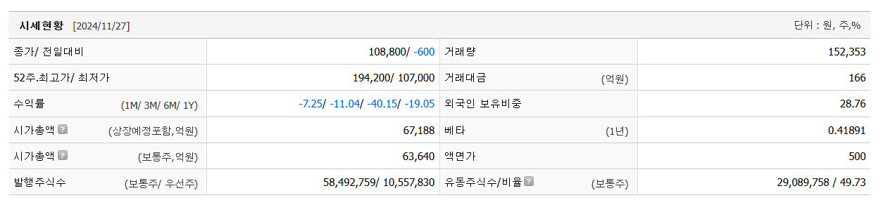 시가 총액과 장중 거래량을 살펴봐야 단기 포트폴리오를 구성할 수 있습니다. 아모레퍼시픽의 시가 총액은 6조3874억 원이며 장중 거래량은 152,353원 을 기록했습니다. 대주주의 정보는 중요하지 않을 수도 있지만 장기적인 관점에서는 확인해보는 것이 좋겠습니다.
