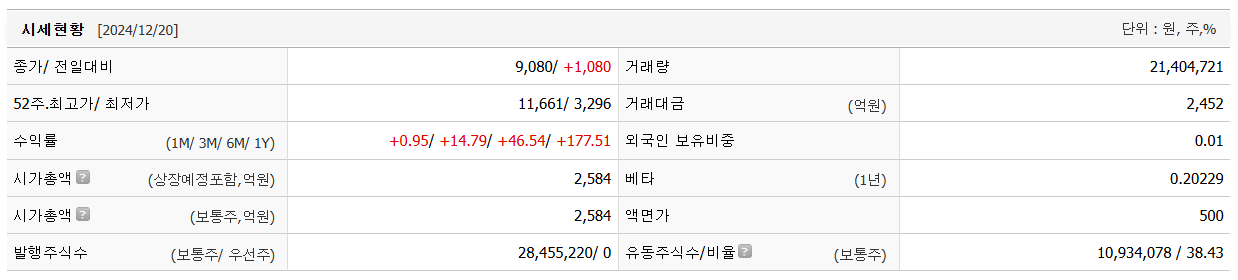 - 공모가 8,000원 대비 60.12% 상승한 1만2,810원에 거래를 마쳤습니다.