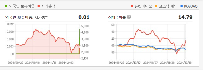 듀켐바이오는 2024년 12월 20일 코스닥으로 이전 상장을 마치며 강력한 주가 상승세를 기록했습니다.