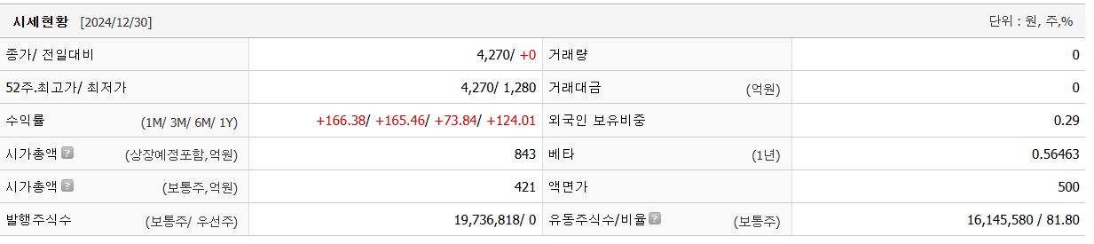 시가 총액과 장중 거래량을 살펴봐야 단기 포트폴리오를 잘 구성할 수 있습니다. 한국첨단소재의 시가 총액은 548억 원이며 장중 거래량은 0원 을 기록했습니다. 대주주의 정보는 중요하지 않을 수 있지만 장기적인 관점에서는 확인하는 것이 좋겠습니다.