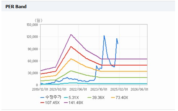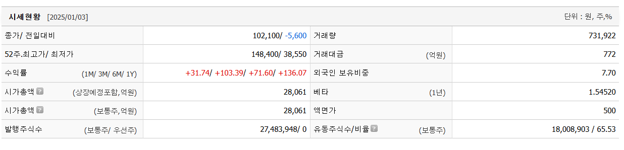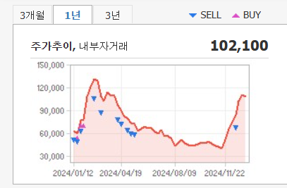 - 현재 신고가를 갱신하며 뚜렷한 저항선이 보이지 않지만, 100,000원이 심리적 지지선으로 주목됩니다.