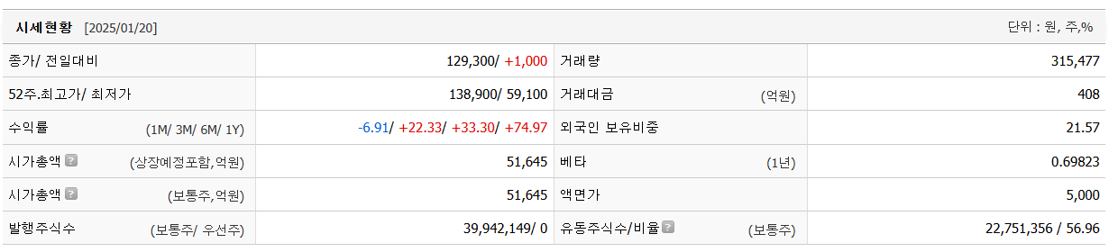 | HD한국조선해양 주가 확인하고 기업 분석 보기 (0) | 2025.01.22 |