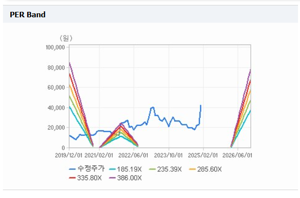 - 2025년 예상 PER 369.3배로 동종업계 평균(37배) 대비 과도한 프리미엄