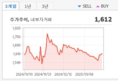 - 2025년 2월 1일 기준 주가는 1,612원, 전일 대비 0.75% 상승