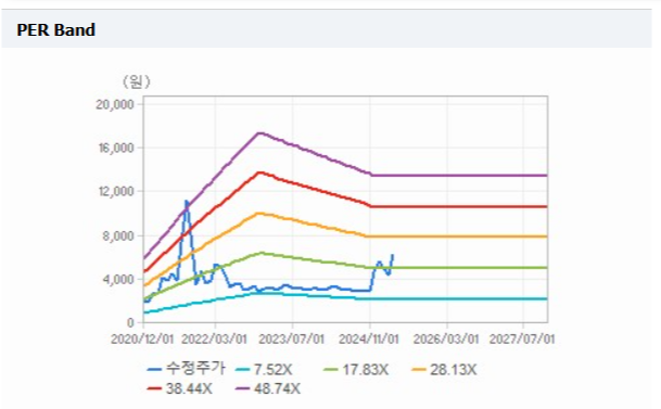 PER이 높은 이유는 향후 실적 개선에 대한 기대감이 시장에 반영되었기 때문입니다. 그러나 4분기 실적이 시장의 기대를 크게 밑돌았다는 점을 고려할 때, 현재의 PER은 다소 부담스러운 수준일 수 있습니다.
